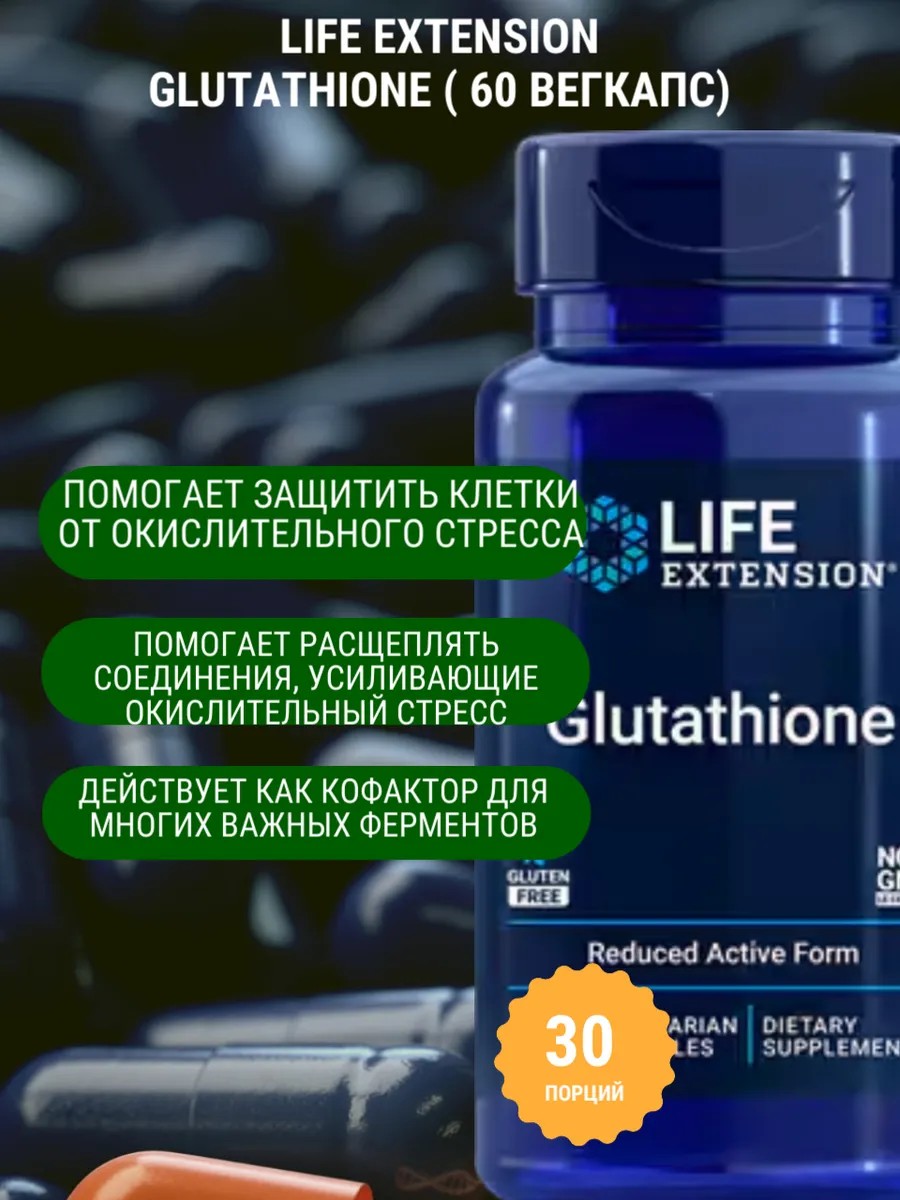 Life Extension Glutathione — мощный антиоксидант в вегетарианских капсулах, 60 шт