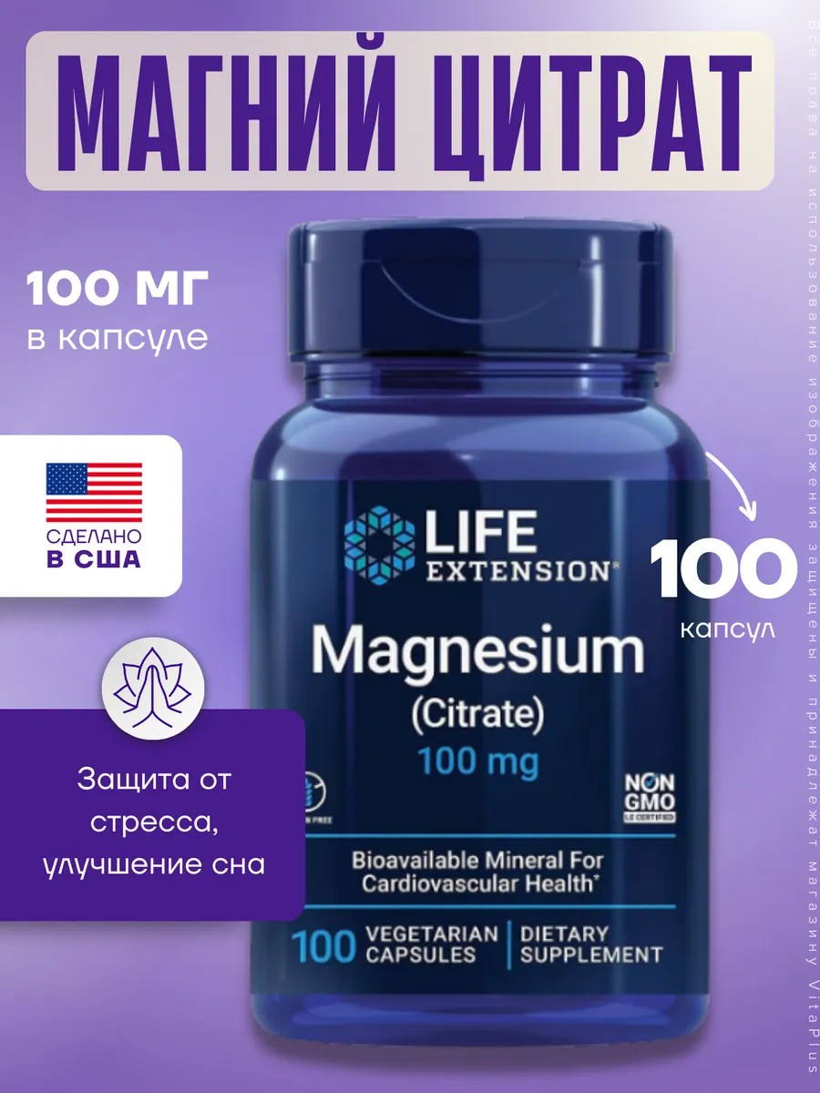 Успокойтесь и насладитесь жизнью с Магний цитрат 100 мг 100 каспул от компании LIFE EXSTENSION!