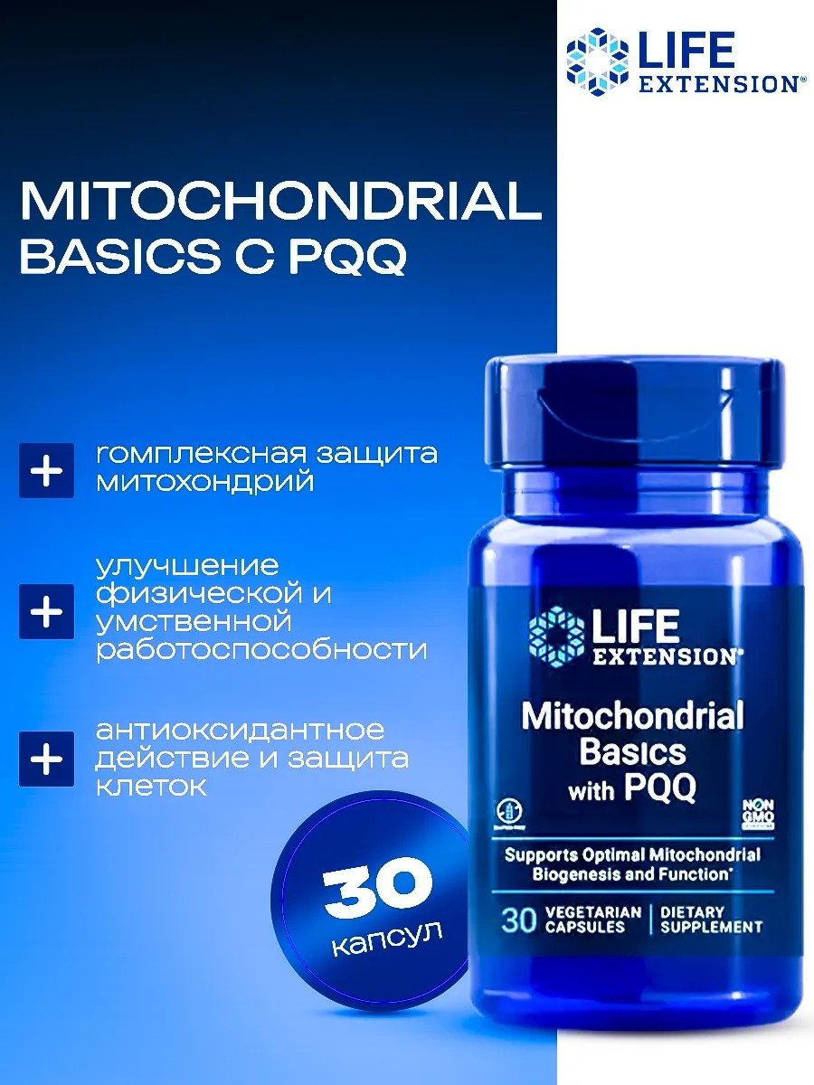 | Composition | Mitochondrial Basics with PQQ (mitochondria, pyrroloquinoline quinone) 30 capsules Life Extension |