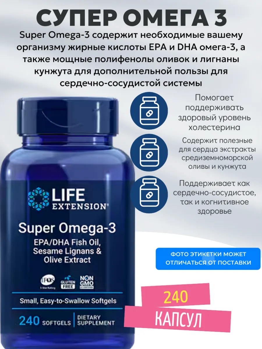 | Торговое наименование | Биологически активная добавка к пище SUPER OMEGA-3 Life Extension / СУПЕР ОМЕГА-3, капсулы по 1875 мг, №60, 120, 240 |