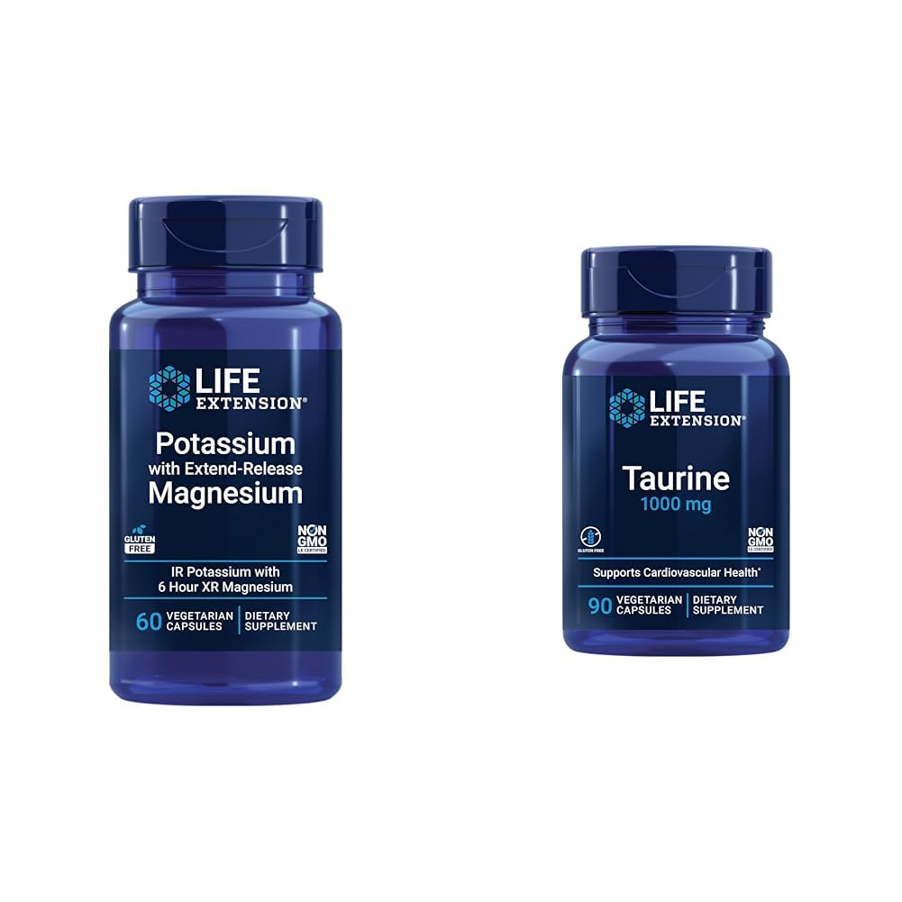 Life Extension Potassium & Magnesium Heart Health Capsules Bundle with Taurine 1000mg Longevity & Exercise Supplement Capsules