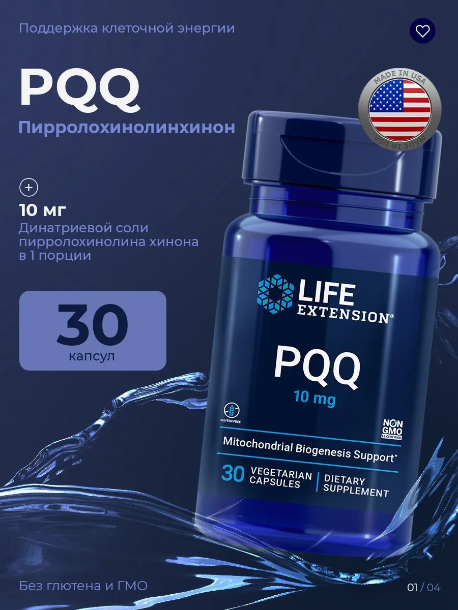 Life Extension, PQQ Пирролохинолинхинон 10 мг, 30 вегетарианских капсул.PQQ - это пищевая добавка, содержащая полезное соединение пирролохинолинхинон, известное своей потенциальной антиоксидантной активностью. Она представляет собой удобный способ добавить больше этого соединения в ваш рацион для поддержки работы митохондрий. PQQ обладает множеством потенциальных преимуществ для здоровья, благодаря своей способности поддерживать здоровый рост, функционирование и обновление митохондрий. Это позволяет улучшить производство энергии и оказывать благоприятное влияние на работу репродуктивной системы человека. PQQ также помогает предотвратить старение и защищает здоровье жизненно важных органов, таких как мозг, сердце и печень. Наша формула препарата не содержит ГМО,глютена и подходит для вегетарианцев. ПРИМЕНЕНИЕ: Принимать по одной (1) капсуле один или два раза в день или по рекомендации врача. ПРЕДУПРЕЖДЕНИЕ: Хранить вне досягаемости детей. Хранить при комнатной температуре. Проконсультируйтесь с вашим медицинским работником перед использованием, если вы беременны или кормите грудью, имеете или имели заболевание, или принимаете лекарства, отпускаемые по рецепту, особенно препараты, разжижающие кровь.