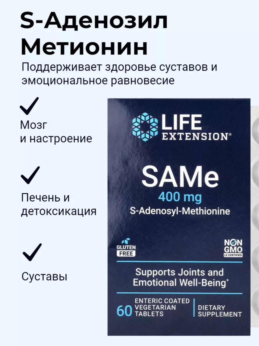 Life Extension S-Аденозил Метионин, SAME, 400 мг, 60 таблеток