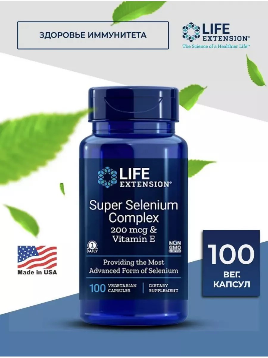 Life Extension, Super Selenium Complex & Vitamin E, 200 mcg, 100 Vegetarian Capsules. Исследования показали, что некоторые долгожители по всему миру имеют высокие уровни содержания полезных для здоровья минералов, включая селен. Наш суперкомплекс селена содержит три формы селена, а также витамин E для крепкого здоровья и долголетия. Каждая из этих действенных форм селена помогает вашему организму бороться с ключевым фактором старения - окислительным повреждением. Преимущества суперкомплекса селена помогает организму бороться с окислительным повреждением. Помогает поддерживать нормальную роботу щитовидной железы и иммунной системы у здоровых людей. Улучшает состояние сердца, мозга и поддерживает здоровый процесс деления клеток.