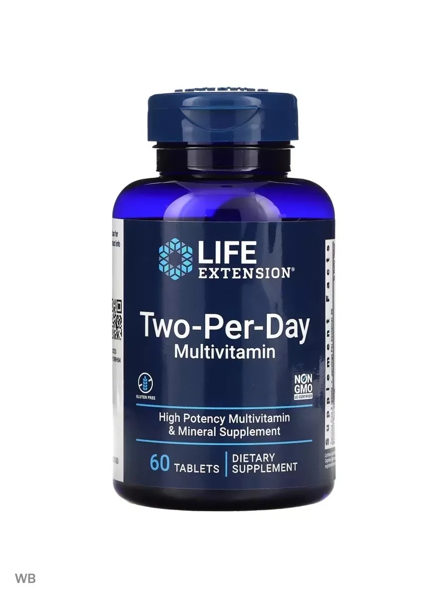 Life Extension Two-Per-Day Multivitamin - комплекс, который содержит необходимое количество витаминов и микроэлементов для хорошего самочувствия. Часто в витаминных комплексах указывается, что количество микроэлементов соответствует нормам потребления, однако подразумевается минимальное значение. Принимая такие добавки, можно избежать дефицита, однако при повышении нагрузок возникает потребность в дополнительных источниках витаминов или повышении дозировки.