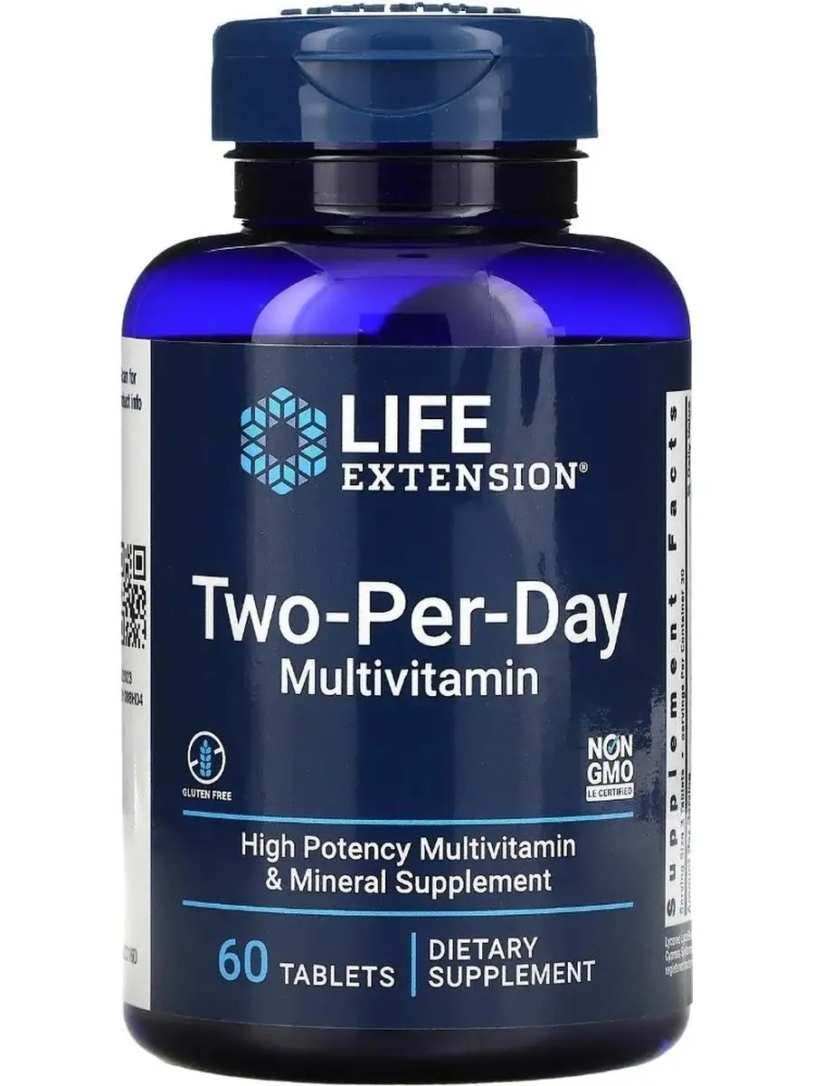 Life Extension, Мультивитамины для двух приемов в день, 120 таблеток.** Полезные свойства: витамины А, С, Д3, Е, В1, В2, В6, В12, фолат, ниацин. Ингредиенты: микрокристаллическая целлюлоза, стеариновая кислота, кроскармеллоза натрия, крахмала, мальтодекстрин, дикальций фосфат, растительный стеарат, диоксид кремния, пленочная оболочка на водной основе (очищенная вода, гидроксипропилметилцеллюлоза, глицерин). Хранить в плотно закрытой упаковке в сухом и прохладном месте. Life Extension Two-Per-Day Multivitamin.В наличии 60 таблеток и 120 таблеток выбирайте нужное для вас.Если что то не знаете о товаре,задавайте вопросы.Life Extension / Мультивитамины Two-Per-Day 120 таблеток/Two-Per-Day Multivitamin 60 таблеток.Two Per Day.Высокоэффективная добавка с мультивитаминами и микроэлементами для приема дважды в день без сои содержат биоактивную форму фолата (витамина группы B), 5-МТГФ, кверцетин, цитрат цинка, витамина E в виде смешанных токоферолов и многое другое.Лютеин и зеаксантин для здоровья глаз. Экстракт бархатцев со стандартизированным содержанием транс-лютеина и транс-зеаксантина в нашем составе для приема дважды в день улучшает здоровье глаз и помогает бороться с окислительным стрессом.Каждый должен получать максимальную пользу от мультивитаминов. Нет более простого способа убедиться, что ваш организм получает витамины, микроэлементы и питательные вещества, необходимые для поддержания здоровья. Но не все мультивитамины одинаковы, поэтому выбирайте самые лучшие: таблетки для приема дважды в день от Life Extension.Рекомендации по применениюПеред применением внимательно изучите информацию на этикетке и строго следуйте рекомендациям.Принимать по две (2) таблетки в день дробными дозами во время еды или по назначению лечащего врача.БАД не является лекарственным средством.Без глютенаСертификат Non GMO LE CertifiedВысокоэффективная добавка с мультивитаминами и микроэлементамиПищевая добавка
