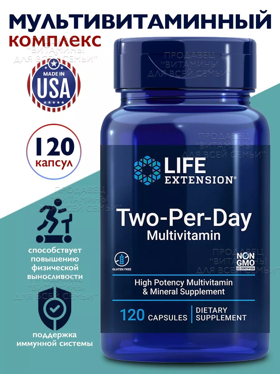 Life extension Мультивитамины Two-Per-Day Комплекс 120 капсул