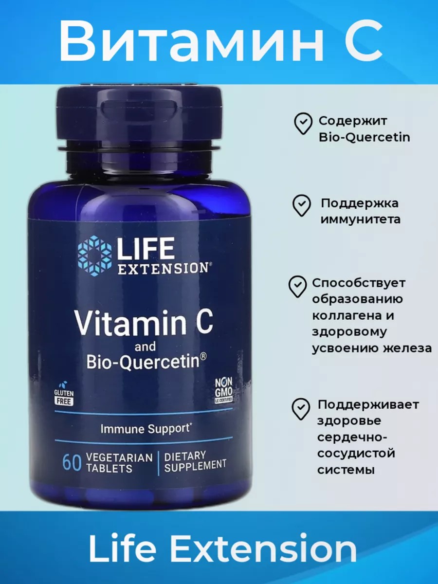 Пищевая добавка Life Extension — это высокоэффективный витамин C с формой кверцетина повышенной усвояемости. Витамин C поддерживает здоровье иммунной системы, выработку коллагена и многое другое. Кверцетин — это флавоноид, который дополняет полезные свойства витамина C, подавляя окислительный процесс и воспаление, а также поддерживает здоровье сердечно-сосудистой системы.