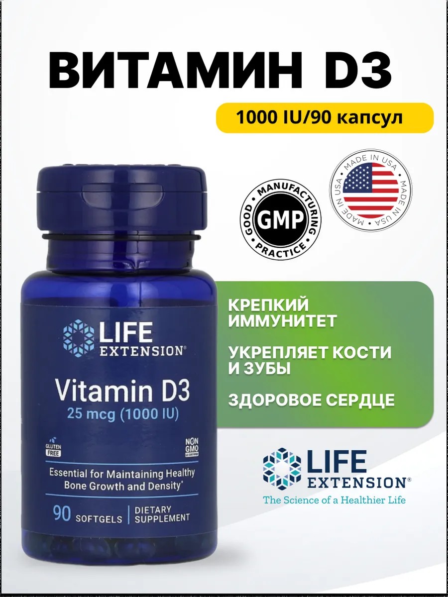 LIFE Extension Витамин Д3, 90 капсул 1000