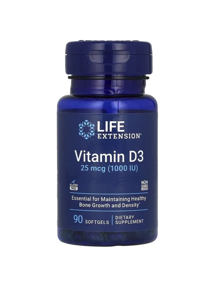 Life Extension Vitamin D3 25 mcg (1000 IU) is a high-quality dietary supplement presented in the form of 90 softgels, each containing 25 mcg (1000 IU) of vitamin D3.