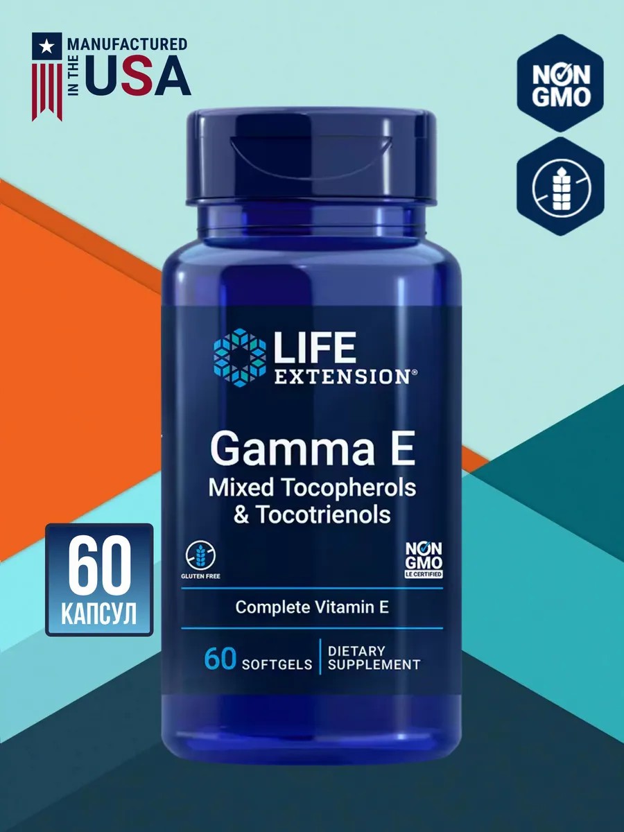 Life Extension Витамин E Gamma E Mixed Tocopherols & Tocotrienols 60 капсул – биологически активная добавка, поддерживающую здоровье сердечно-сосудистой, нервной и иммунной системы.