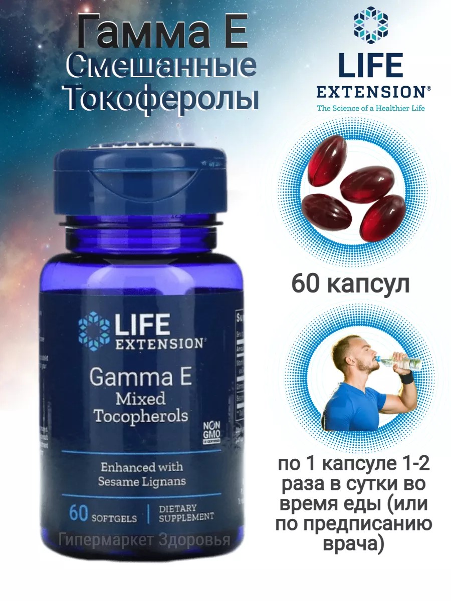 Life Extension Gamma E Mixed Tocopherols & Tocotrienols – комплекс натуральных витаминов E с лигнанами (60 капсул) – это мощный антиоксидантный БАД для улучшения здоровья человека, рекомендованный взрослым, мужчинам, женщинам, девушкам, беременным и пожилым.