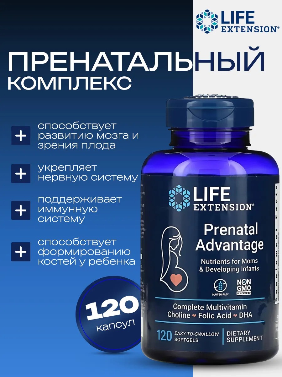 Life Extension Витамины для беременных Prenatal Advantage, 120 капсул – витаминно-минеральный комплекс, разработанный для поддержания здоровья женщины в период вынашивания ребенка.