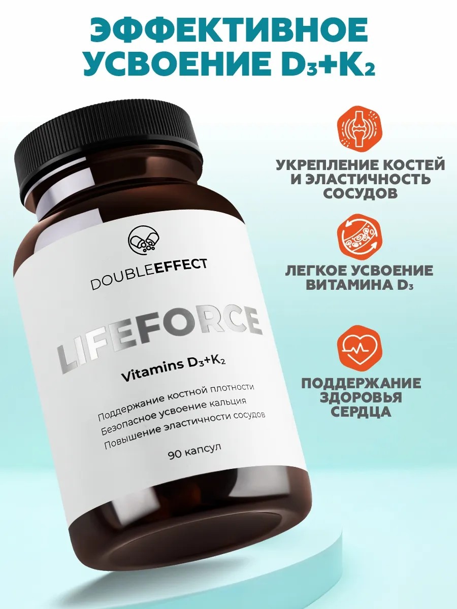 LIFE FORCE БАД к пище DOUBLE EFFECT D3 + К2