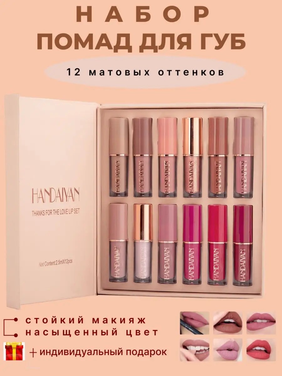 В этом косметическом наборе вы найдете 12 матовых оттенков помады, которые подойдут каждой женщине и девушке, придавая вашему образу загадочность и притягательность. Кремовые помады обладают водостойкой и уходовой формулой. Матовая текстура каждой оттеночной помады обеспечивает стойкое покрытие, которое продержится весь день. Губы будут выглядеть бархатистыми и соблазнительными. Помады тинт не только придают губам яркий цвет, но и ухаживают за ними, благодаря увлажняющим компонентам и маслам в составе. Ваши губы перестанут быть сухими и шелушиться. Нюдовые оттенки помад обеспечат разнообразие для вашего макияжа, подчеркнут вашу индивидуальность. Матовые помады подходят как для повседневного образа, так и для особенных случаев. С набором помад вы сможете создать уникальный make up и подобрать идеальный оттенок для вашего настроения и события. Женский подарочный набор помад станет отличным подарком для любительниц корейской косметики. Ведь сатиновые помады упакованы в красивую коробку. Благодаря профессиональному качеству косметики для макияжа эти матовые помады сделают ваш макияж неповторимым.