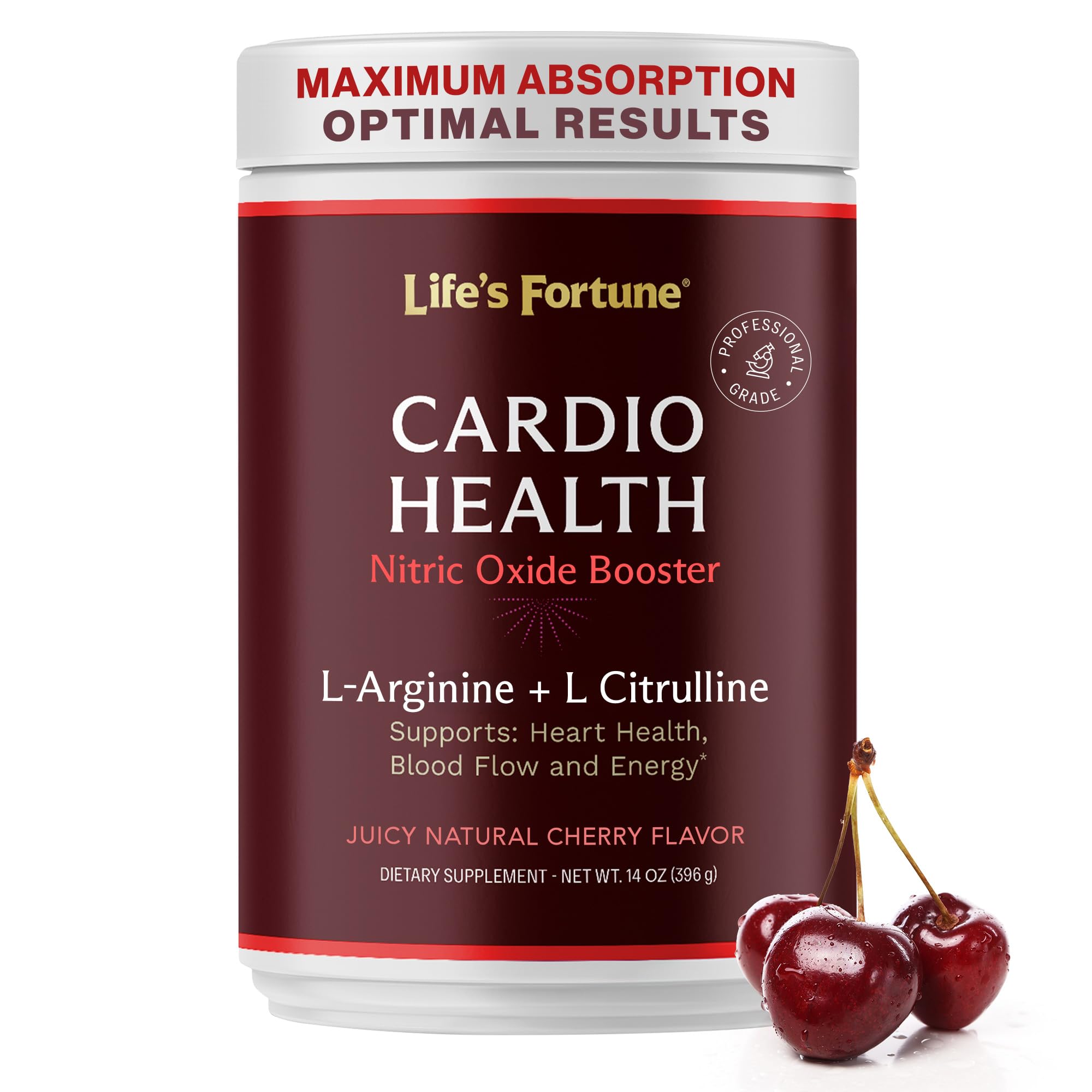 Life's Fortune 5000mg L- Arginine Supplement Powder & 1000mg L-Citrulline High Potency Nitric Oxide Health Booster Endurance Workout Performance Cherry Flavor (30 Servings)