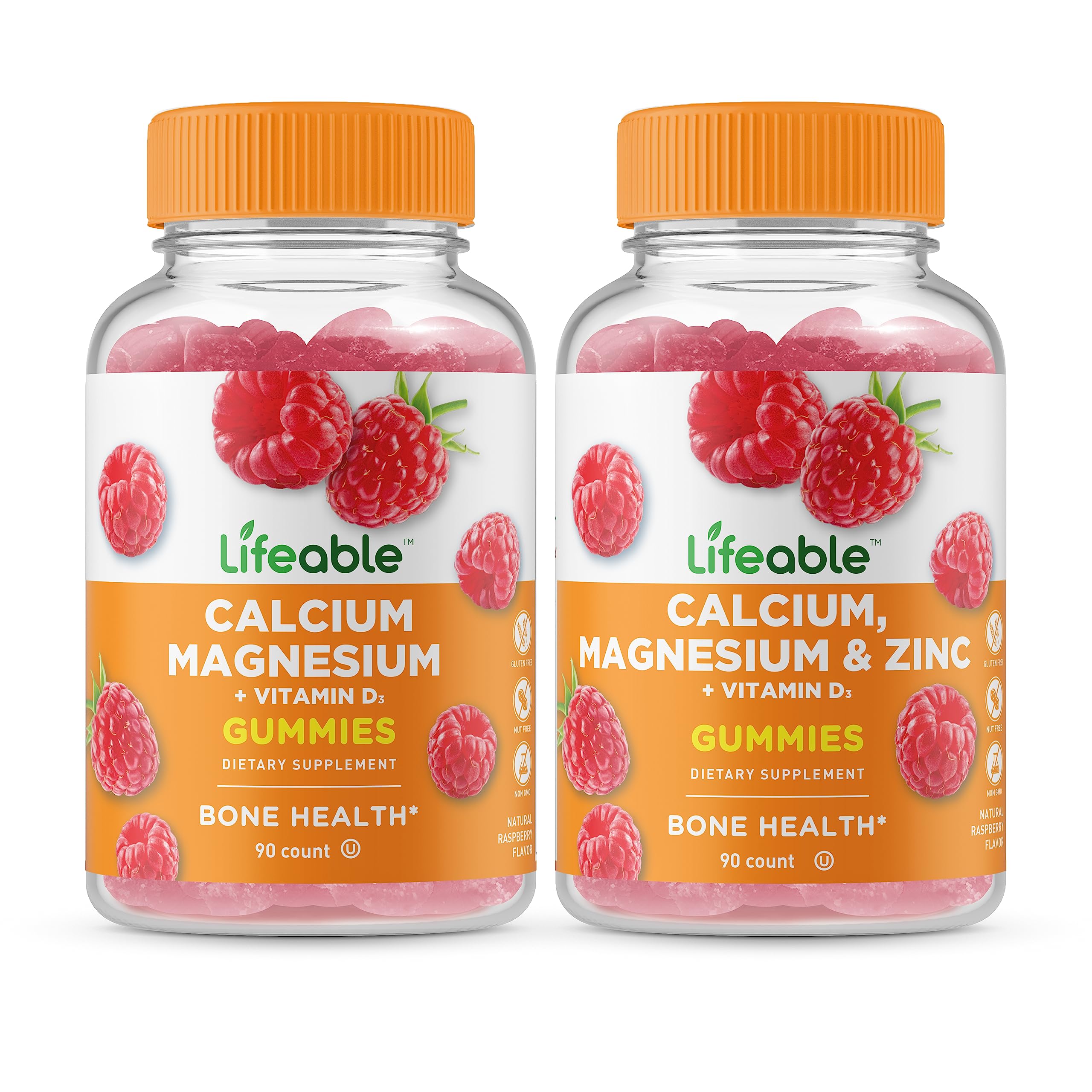 Lifeable Calcium Magnesium + Calcium Magnesium Zinc & Vitamin D Gummies Bundle - Great Tasting Vitamin Supplement Gluten Free GMO Free Chewable Gummy