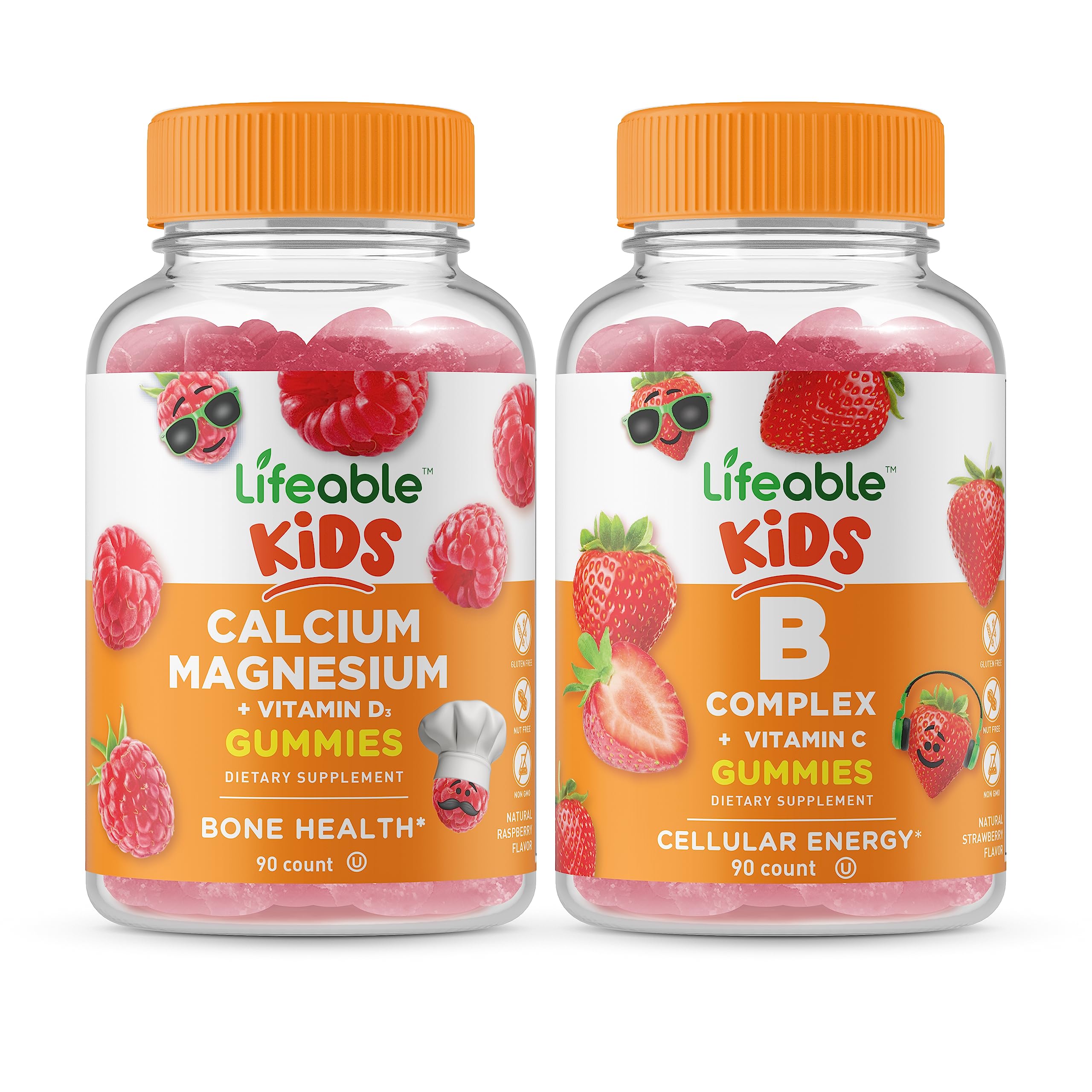 Lifeable Calcium Magnesium Kids + B Complex Kids Gummies Bundle - Great Tasting Vitamin Supplement Gluten Free GMO Free Chewable Gummy