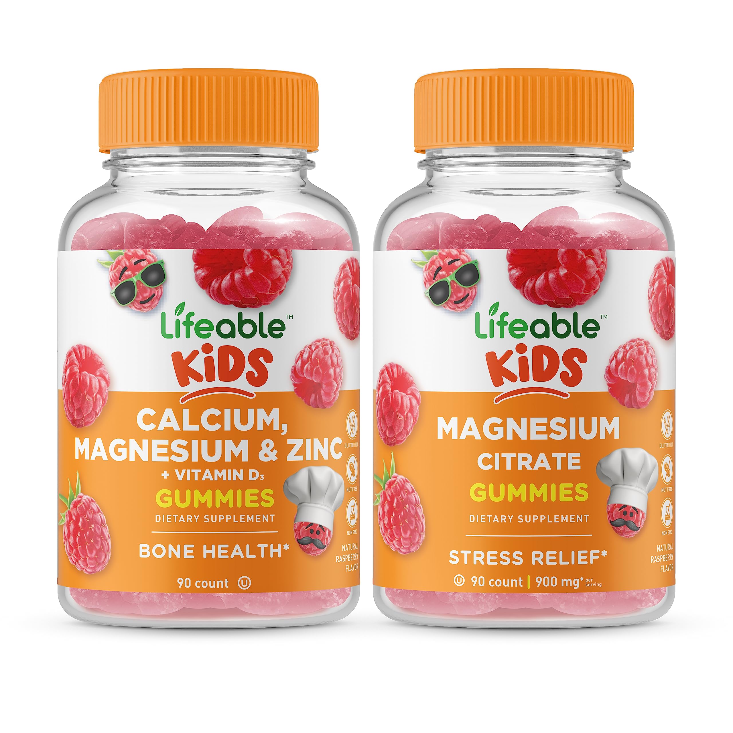 GREAT TASTING GUMMIES: These gummies have great flavors everyone loves they are pleasant and easy to chew you'll find yourself reaching for more. NATURAL FLAVORED AND NON-GMO: These naturally sourced gummies by Lifeable are certified non-GMO, gluten-free, dairy-free, and free of peanuts. Kosher and Halal. LIFEABLE MAGNESIUM KIDS CONTAINS 900 MG PER SERVING: Each serving is 3 gummies, with a total 900 mg of magnesium citrate. Children should take 3 gummies per day. The bottle contains 90 pieces for 30 servings also suitable for adults too. LIFEABLE CALCIUM MAGNESIUM ZINC KIDS CONTAINS 30 SERVINGS PER BOTTLE: These high potency calcium magnesium zinc gummies are 3 gummies per serving. This bottle contains 90 gummies equaling 30 servings.