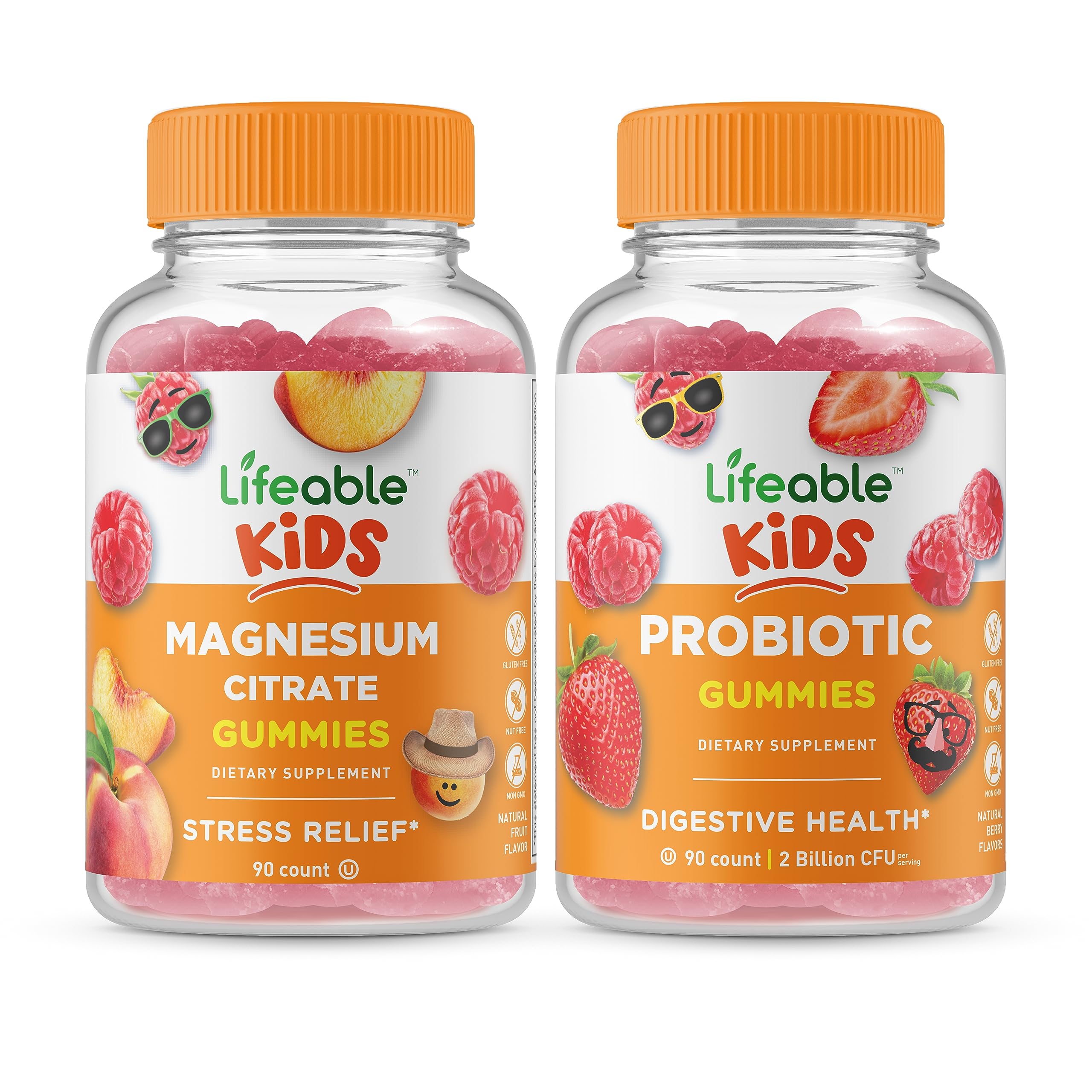 GREAT TASTING GUMMIES: These gummies have great flavors everyone loves they are pleasant and easy to chew you'll find yourself reaching for more. NATURAL FLAVORED AND VEGAN: These Vegan gummies by Lifeable are certified non-GMO, gluten-free, dairy-free, and free of peanuts. Kosher and Halal. LIFEABLE PROBIOTIC 2 BILLION CFU KIDS CONTAINS 2 BILLION CFU PER SERVING: Each serving consists of 2 jellies. This bottle contains 90 gummies, equaling 45 servings. 2 gummies per day is recommended for kids age 2 . These vitamins are suitable for adults, too. LIFEABLE MAGNESIUM CITRATE KIDS CONTAINS 170 MG ELEMENTAL MAGNESIUM PER SERVING: Each serving is 2 jellies, with a total 170 mg of elemental magnesium from 1,420mg Magnesium citrate. Children should take 2 gummies per day. The bottle contains 90 pieces for 45 servings suitable for adults too.