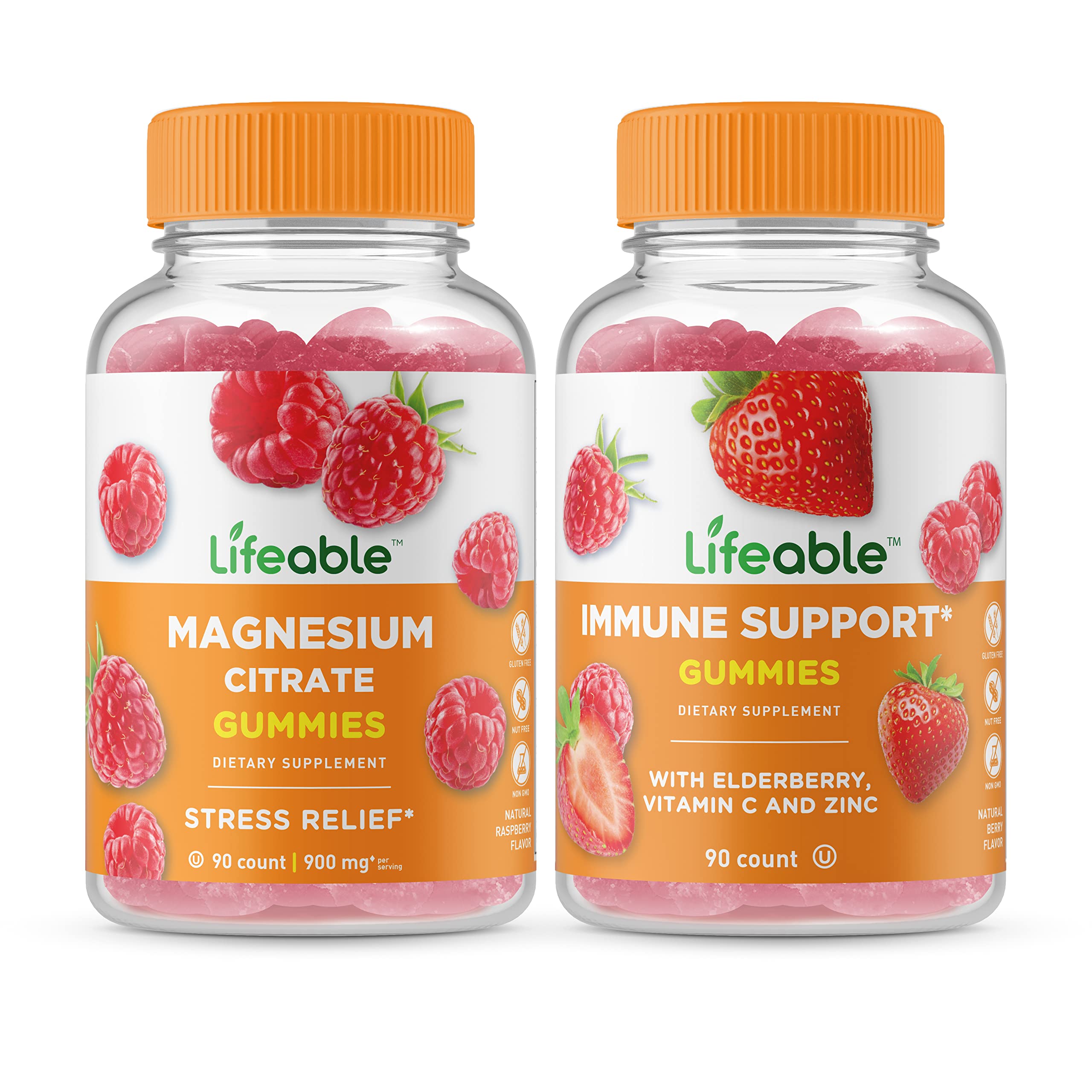 Lifeable Magnesium + Immune Support Gummies Bundle - Great Tasting Vitamin Supplement Gluten Free GMO Free Chewable Gummy