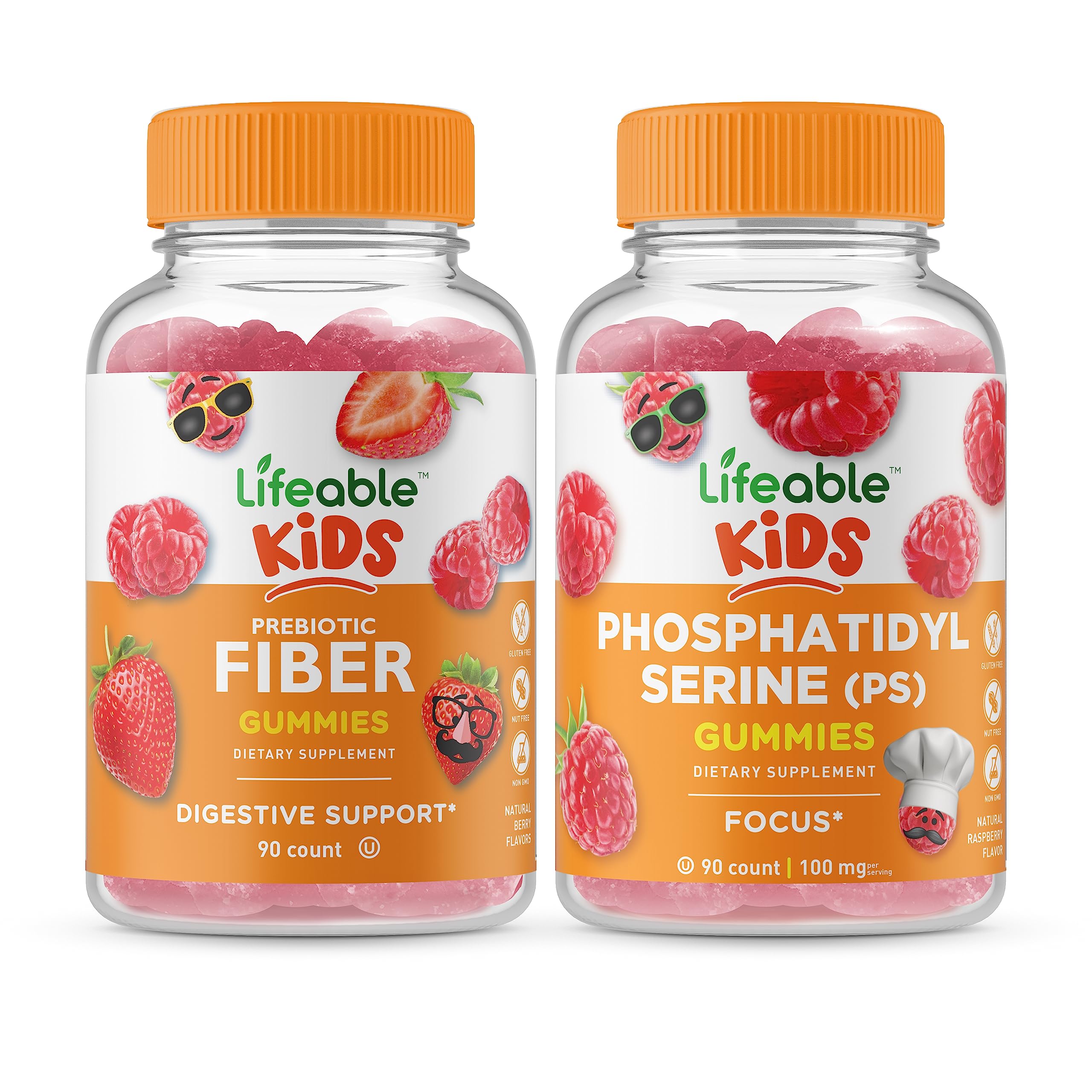 Lifeable Prebiotic Fiber Kids + Phosphatidylserine (PS) Kids Gummies Bundle - Great Tasting Vitamin Supplement Gluten Free GMO Free Chewable Gummy