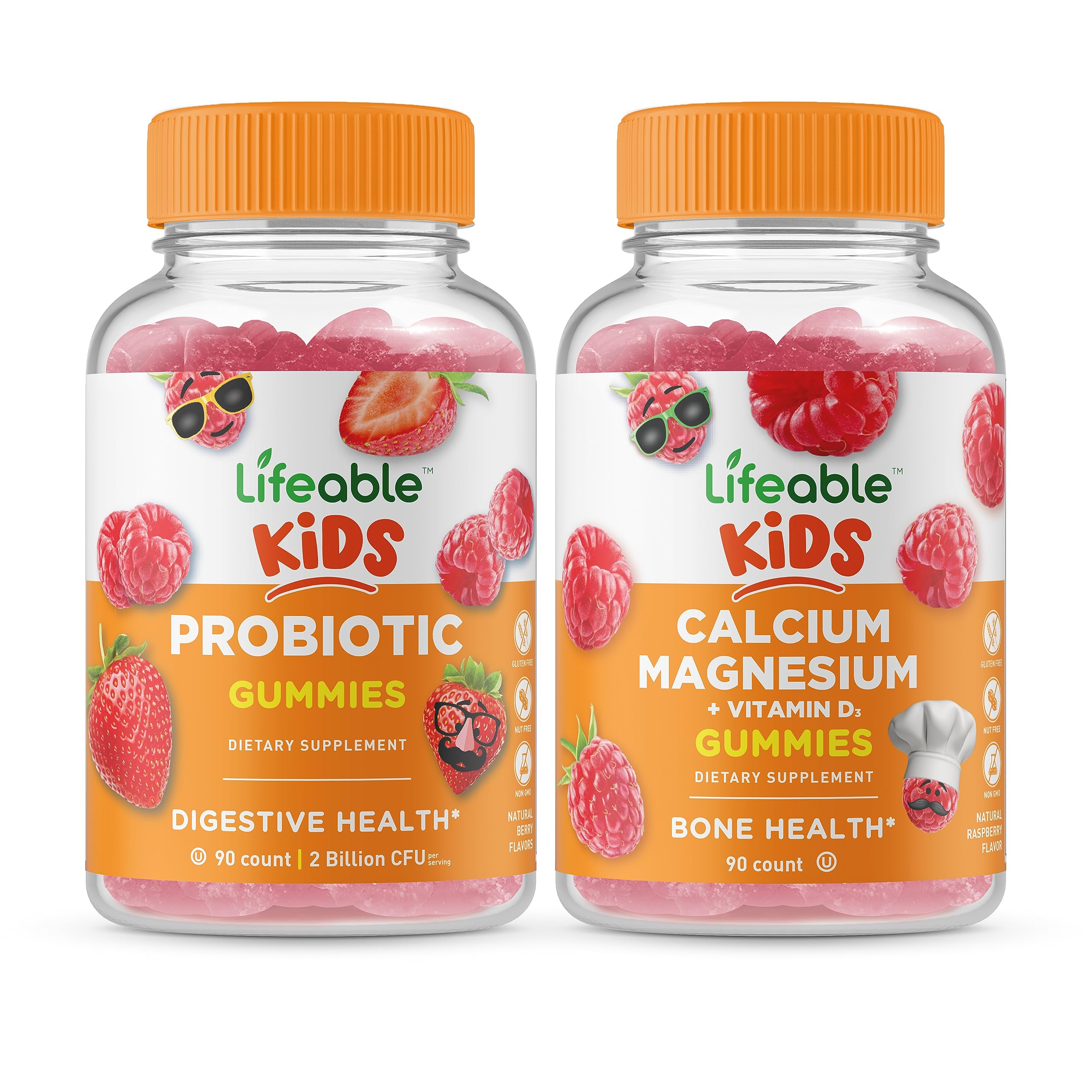 DOCTOR RECOMMENDED: Lifeable spends thousands of hours on research, testing, and analyzing each of our products. Our entire line of supplements is backed with the approval of a renowned family doctor. GREAT TASTING GUMMIES: These gummies have great flavors everyone loves they are pleasant and easy to chew you'll find yourself reaching for more. NATURAL FLAVORED AND NON-GMO: These naturally sourced gummies by Lifeable are certified non-GMO, gluten-free, dairy-free, and free of peanuts. Kosher and Halal. LIFEABLE CALCIUM MAGNESIUM KIDS CONTAINS 30 SERVINGS PER BOTTLE: These high potency calcium magnesium gummies are 3 gummies per serving. This bottle contains 90 gummies equaling 30 servings. LIFEABLE PROBIOTIC 2 BILLION CFU KIDS CONTAINS 2 BILLION CFU PER SERVING: Each serving consists of 2 jellies. This bottle contains 90 gummies, equaling 45 servings. 2 gummies per day is recommended for kids age 2 . These vitamins are suitable for adults, too.