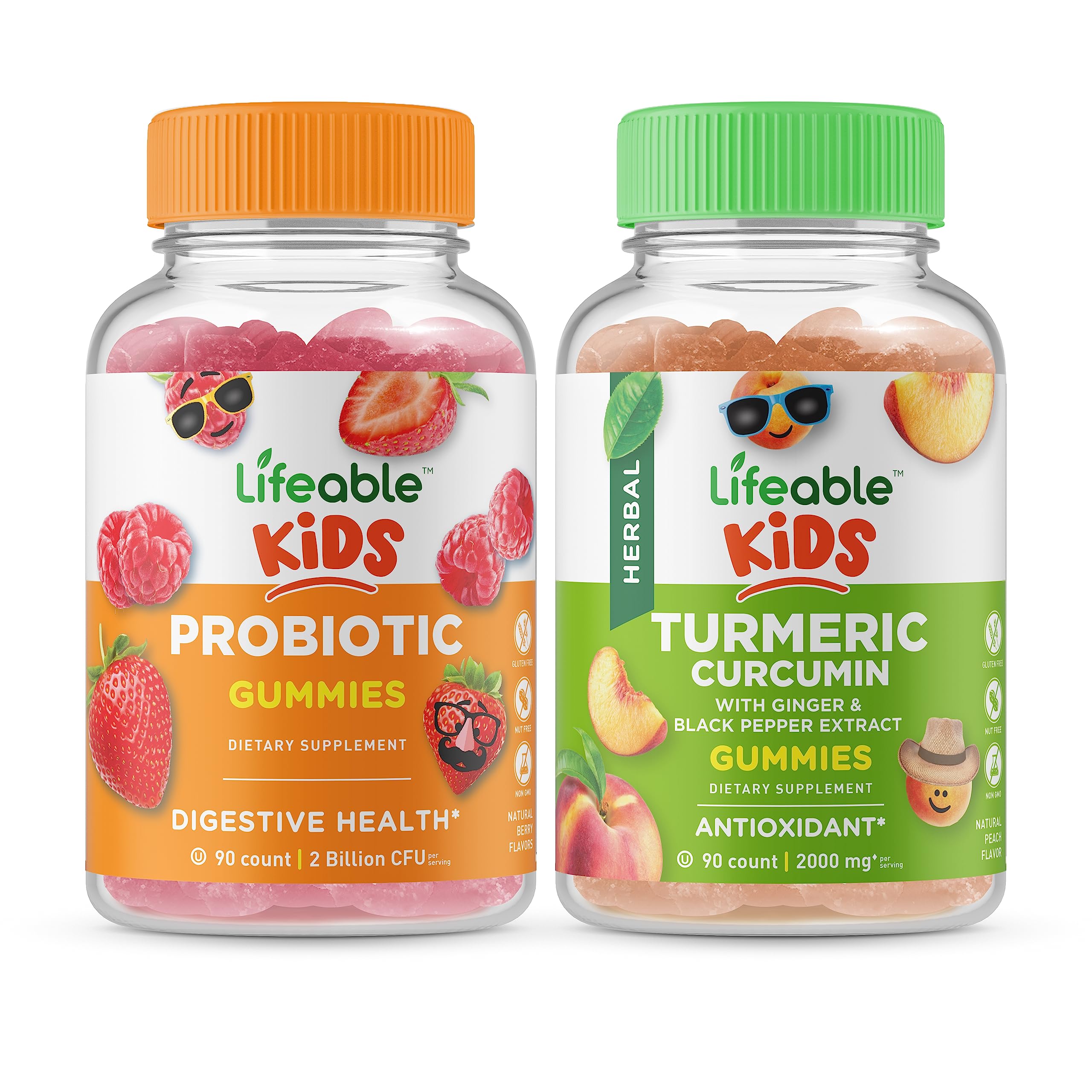 Lifeable Probiotic 2 Billion CFU Kids + Turmeric Curcumin Kids Gummies Bundle - Great Tasting Vitamin Supplement Gluten Free GMO Free Chewable Gummy
