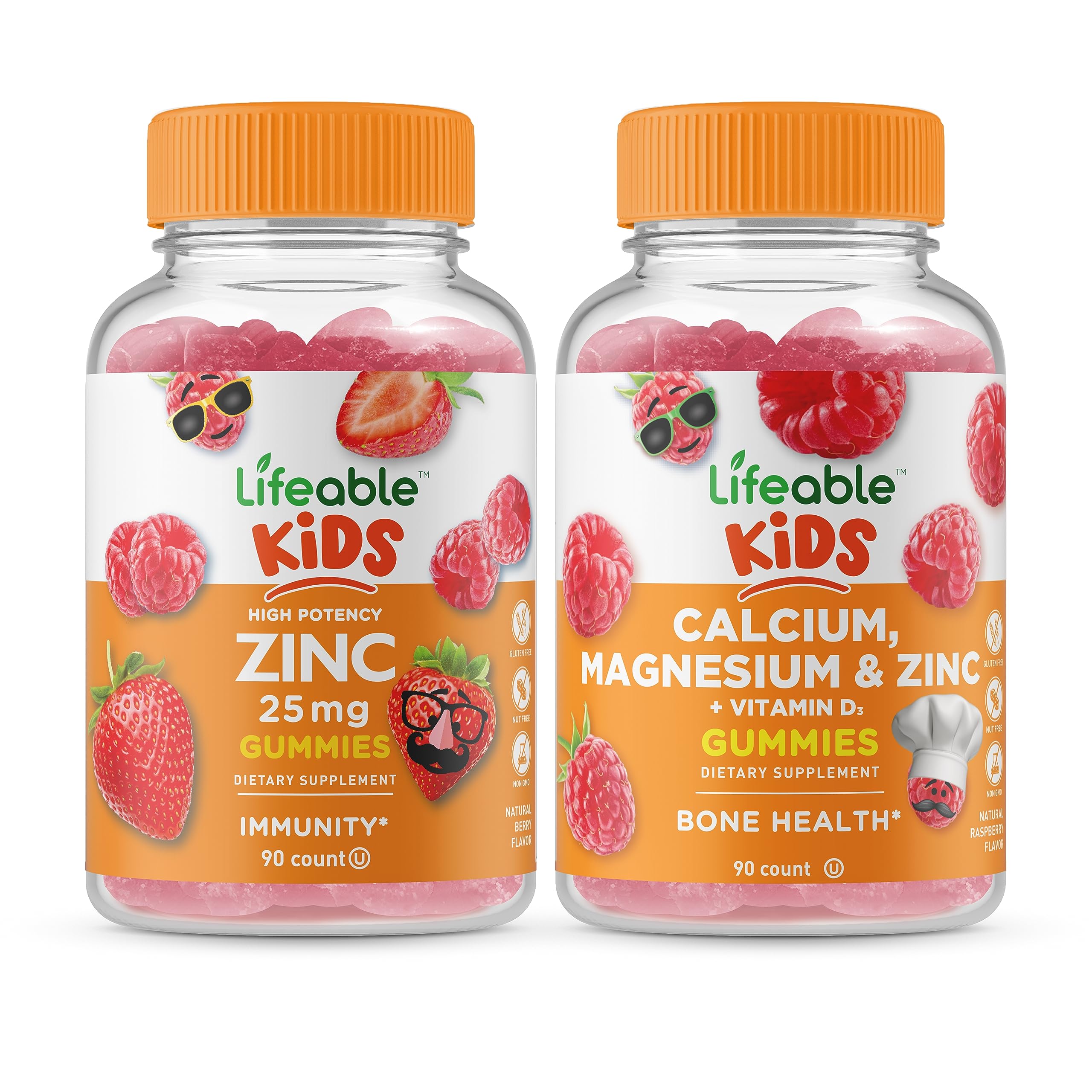 Lifeable Zinc 25mg Kids + Calcium Magnesium & Zinc Kids Gummies Bundle - Great Tasting Vitamin Supplement Gluten Free GMO Free Chewable Gummy