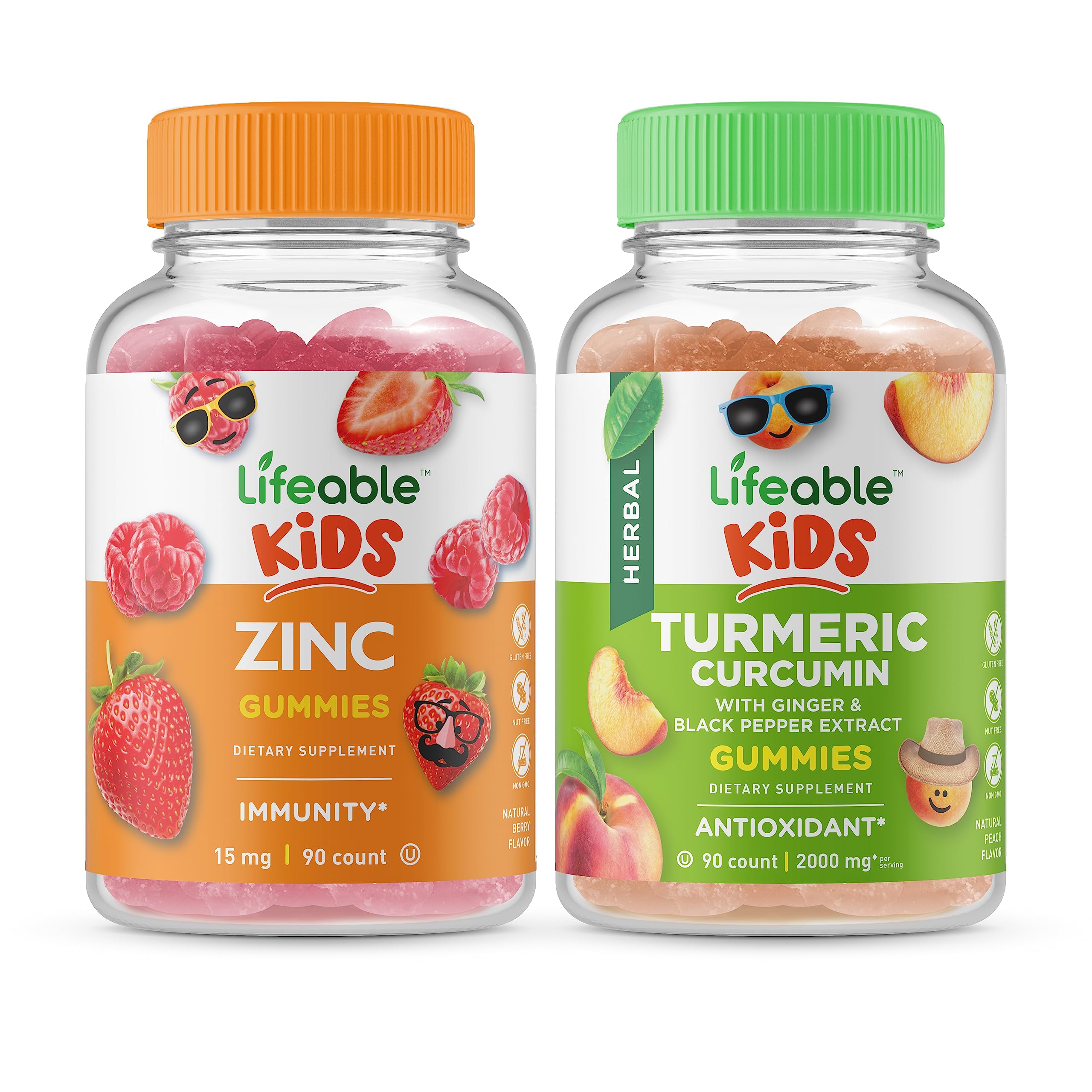 Lifeable Zinc Kids + Turmeric Curcumin Kids Gummies Bundle - Great Tasting Vitamin Supplement Gluten Free GMO Free Chewable Gummy