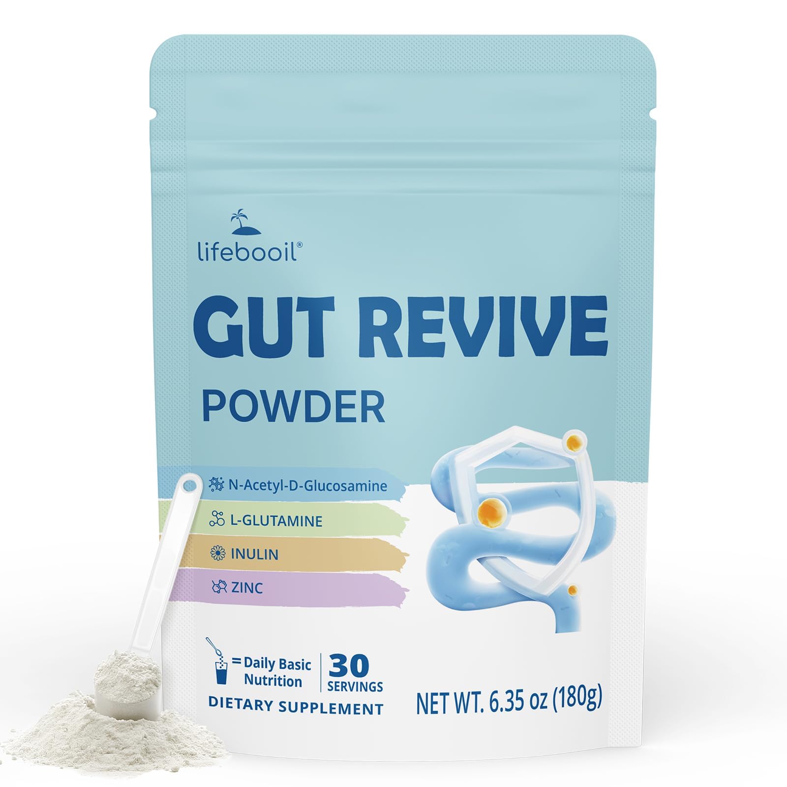 Lifebooil Leaky Gut Powder with L-Glutamine, Prebiotic, Licorice, Slippery Elm Bark for Gut Health & Digestive Health, Super Gut Powder Unflavoured - (30 Servings, 6.30 Oz)