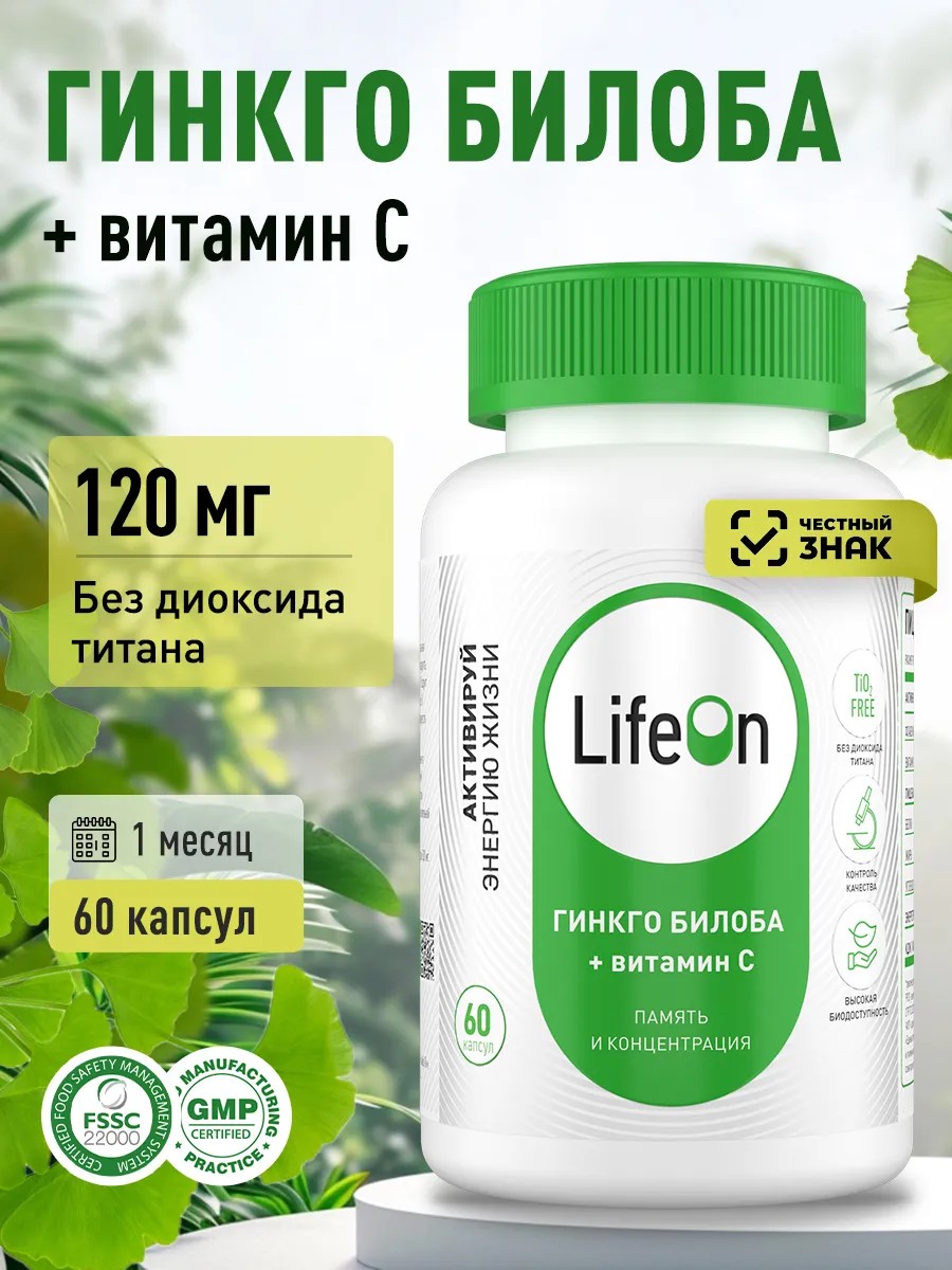 Lifeon Гинкго Билоба с витамином С 60 капсул