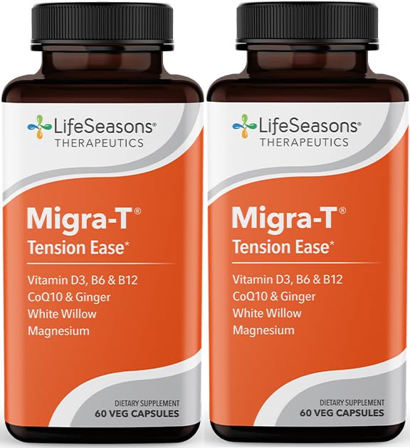 LifeSeasons Migra T - White Willow Bark, Magnesium, CoQ10 & Ginger - 60 Count (Pack of 2) 30 Count (Pack of 2)