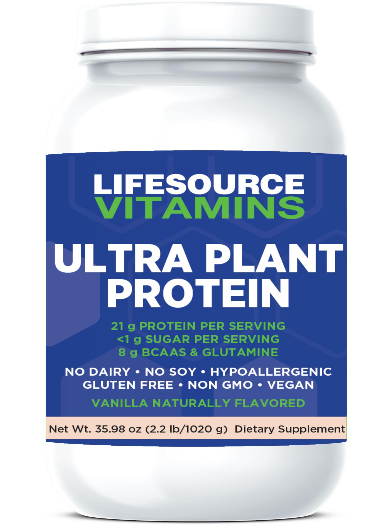 Fuel your body with LifeSource Ultra Plant Protein, a raw vegan protein powder designed to support your active lifestyle. This 2.2 lb vanilla-flavored supplement is packed with high-quality plant-based proteins and essential nutrients. Key Benefits: Complete Nutrition: Provides 21 grams of pure, clean vegan protein per serving. Muscle Growth Recovery: Contains 6,225 mg of BCAAs and 3,475 mg of Glutamine to support lean muscle mass, strength, and recovery. Digestibility: Highly digestible with a perfect 1.0 Protein Digestibility Corrected Amino Acid Score (PDCAAS). Energy Boost: Enhances pre-workout energy levels and aids post-exercise muscle recovery. Clean Ingredients: Free from common food irritants, artificial flavors, sweeteners, and preservatives. Sweetened with Stevia. Hypoallergenic: Non-GMO, gluten-free, dairy-free, soy-free, and free from fillers. Directions: Mix one scoop with water or your favorite beverage daily. Ingredients: Includes pea protein isolate, cranberry seed protein, chia seed protein, and sacha inchi seed protein. Made in the USA.