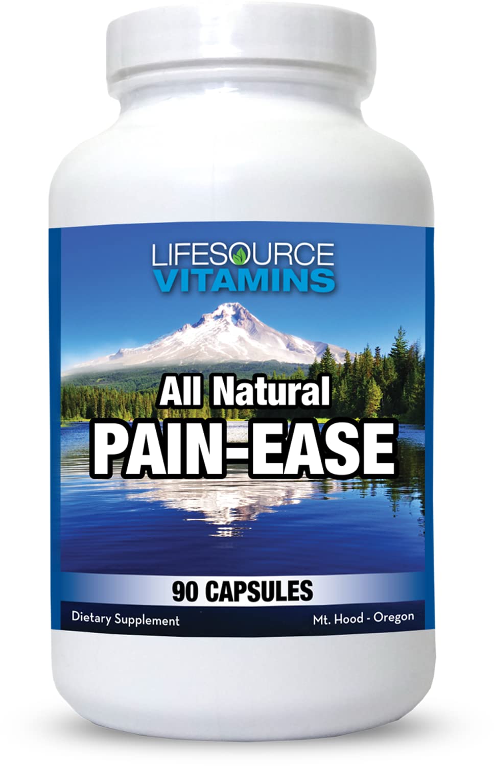 LifeSource Vitamins All Natural Pain Ease 20 Synergistic Herbs and Enzymes That Naturally & Safely Support: Headaches & Migraines - Knees Shoulders Joints Leg Pain Tension