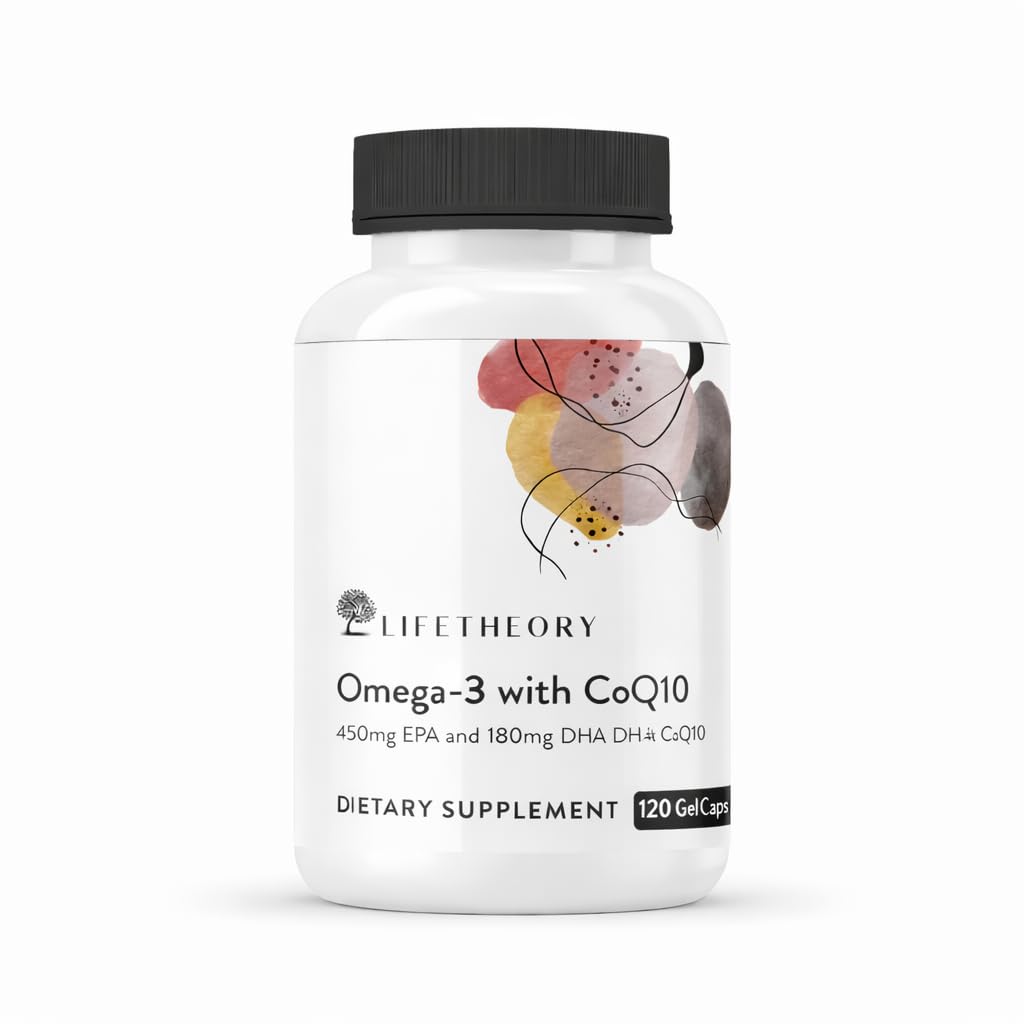 LIFETHEORY Omega-3 with CoQ10 | 450mg EPA & 180mg DHA per Serving | Fish Oil Dietary Supplement | with Coenzyme Q10 | 120 Softgels