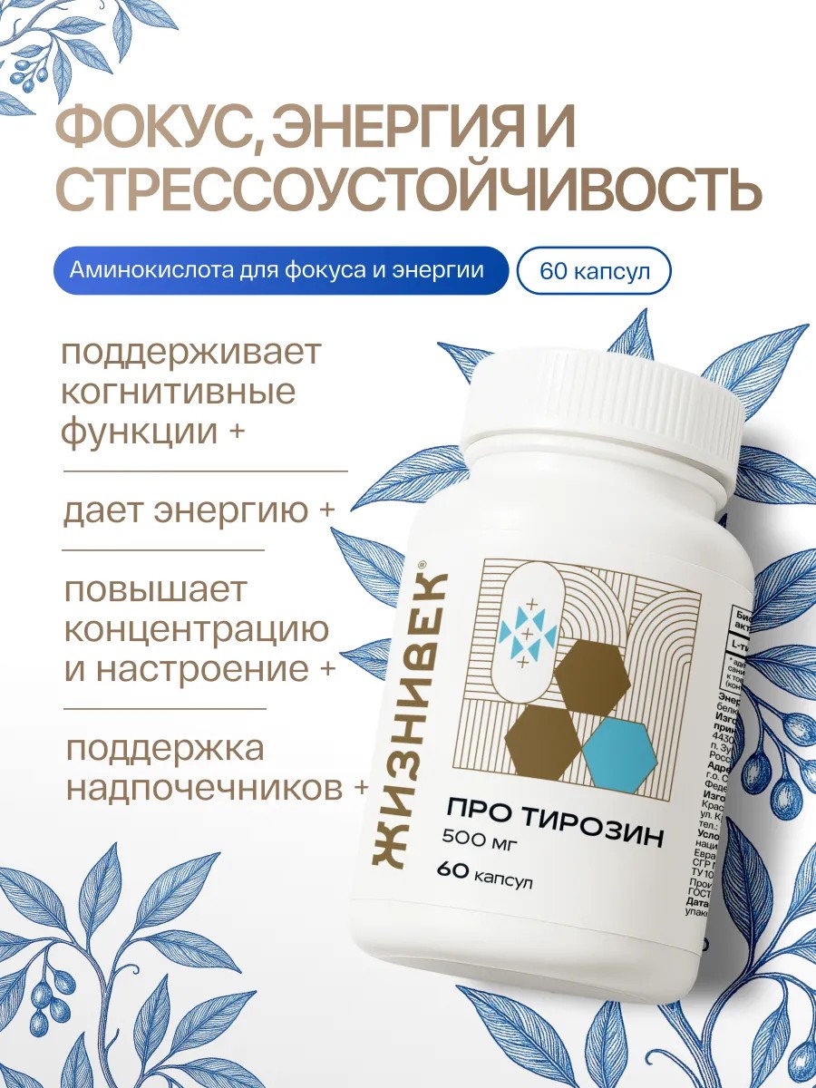 | Состав | L-тирозин; капсула (гидроксипропилметилцеллюлоза) |