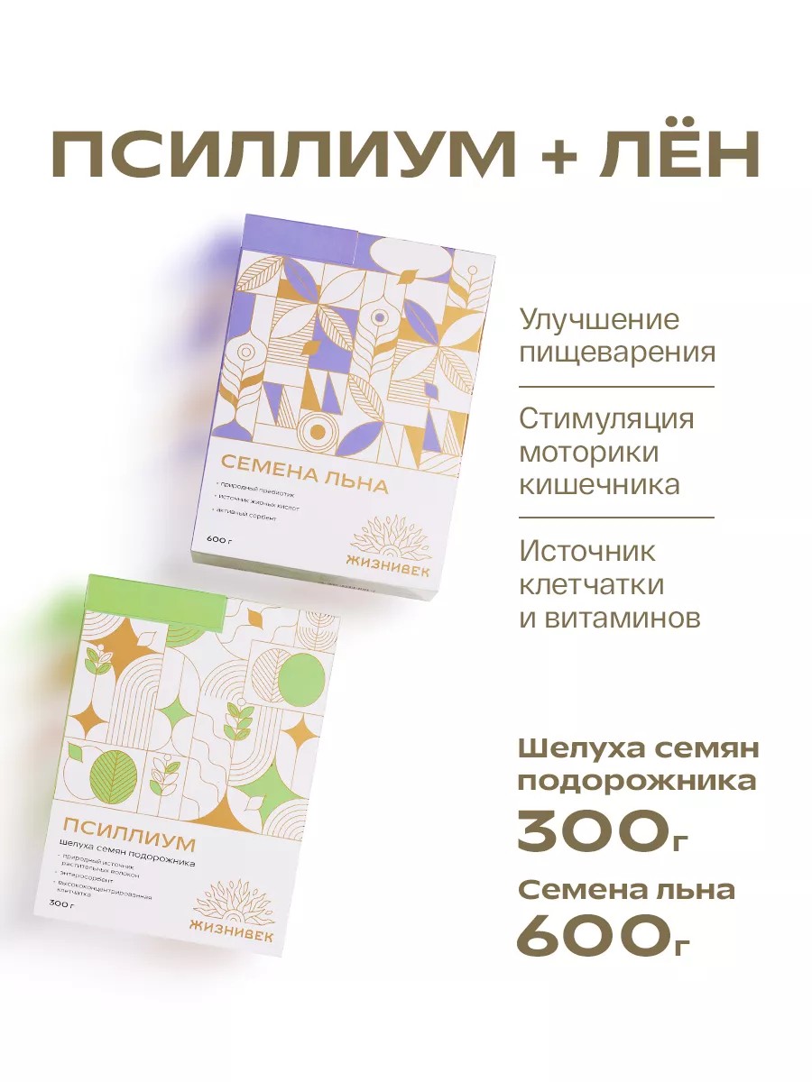 | Комплектация | Псиллиум - 1 коробка 300гр.; Лён - 1 коробка 600гр. |