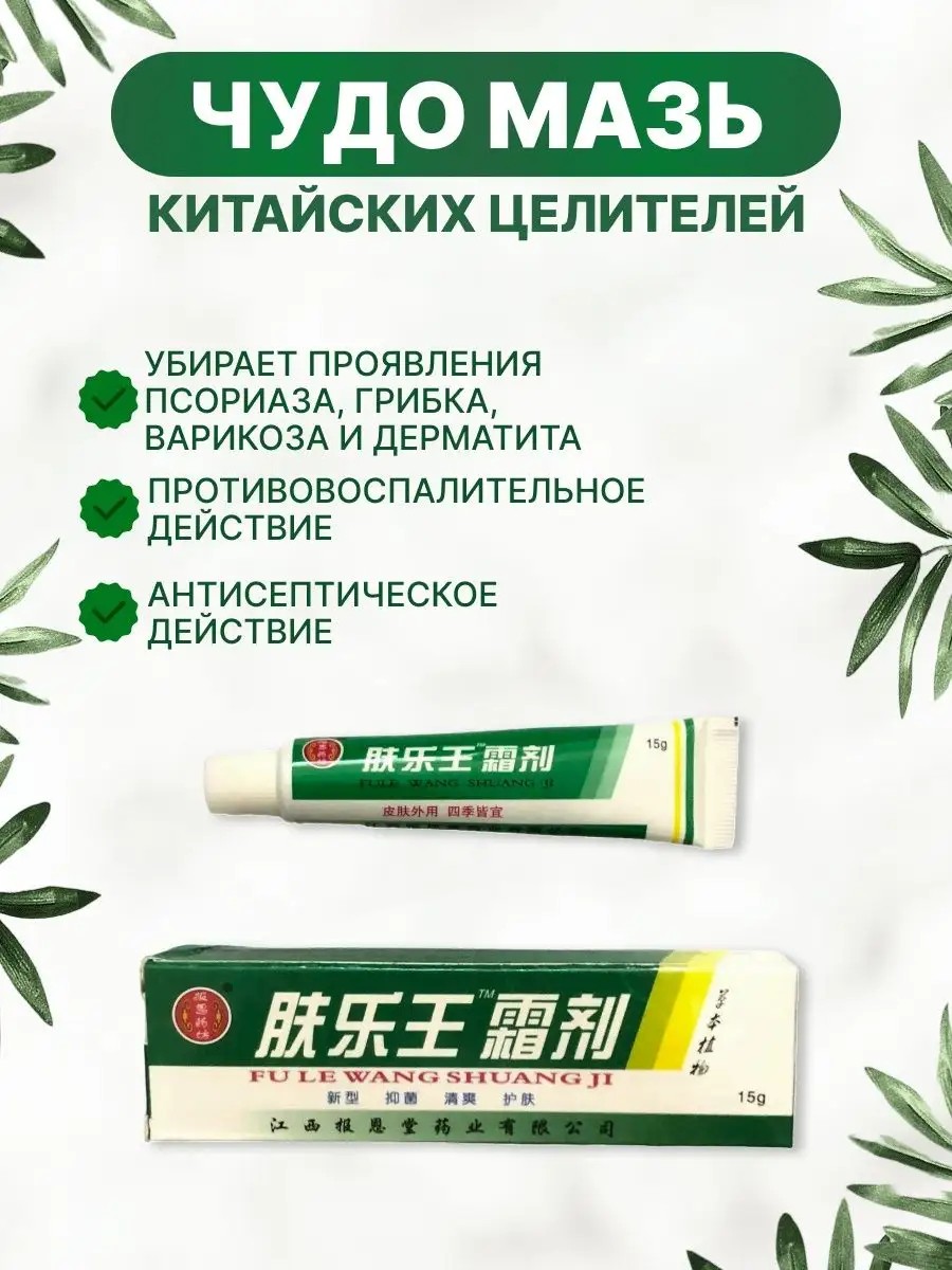 The Chinese antibacterial miracle ointment Fu Le Wang Yijun Gao is advertised as a refreshing skin care product and is the best remedy for skin conditions of various origins. It has an antiseptic and anti-inflammatory effect, eliminating the symptoms of psoriasis, fungus, varicose veins, and dermatitis. It is highly effective against acne and pimples, as well as dry eczema and dermatitis. The product has successfully passed clinical trials. Its unique feature is its 100% natural composition, which effectively treats burns and herpes, and is hormone-free! This Chinese ointment with a healing effect is intended for use as an adjunct treatment for severe forms of psoriasis and allergies, and can be used as the primary treatment for mild to moderate cases. This acne cream for problem skin is used to combat itching on the face and scalp, arms, legs, and torso. It is ideal for teenagers who suffer from breakouts on the face and body. It soothes the skin and relieves itching from mosquito bites. It quickly heals wounds and regenerates the skin, relieves irritation, and cleanses affected areas. It is effective for neurodermatitis, psoriasis, eczema, dermatitis, seborrhea, herpes, fungal infections of the nails and skin, candidal balanitis, acne, bruises, atopic dermatitis, boils, and other skin conditions caused by bacterial infections and viruses. Directions: Rinse the affected area with warm or cold water and allow it to dry. Apply a small amount to the affected area 2-3 times daily with gentle massaging movements. The treatment course lasts 2 weeks. Improvements in skin condition and a reduction in pain and itching are observed as early as 2-3 days. A sensation of coolness or warmth may also occur after application, which subsides within a few minutes. The body cream does not stain clothing and is non-addictive. The therapeutic effect is achieved through the use of a balanced herbal composition. Contraindications: pregnancy and lactation, childhood, individual intolerance to any of the ingredients. Do not use on open wounds. Avoid contact with eyes. If contact occurs, rinse thoroughly with water. The moisturizer has a shelf life of 2 years from the date of manufacture. After opening, use within 6 months. Store in a dark, dry place, protected from sunlight. Store at temperatures between 8 and 25 degrees Celsius. Keep out of reach of children. Important! Do not combine ointments used for the treatment of psoriasis. Ingredients: Chinese sumac (Chinese gall), Chinese honey locust (Gleditsia sinensis linn), Typhonium giganteum rhizome (engl.), Pseudolarix amabilis rehd, Sophora flavescens, Cnidium monnieri L. cuss, Kochia (Latin title), Cortex dictamni root bark, Amur cork tree (Phellodendron amurense rupr.), Chlorhexidine acetate. Foot cream, foot ointment.