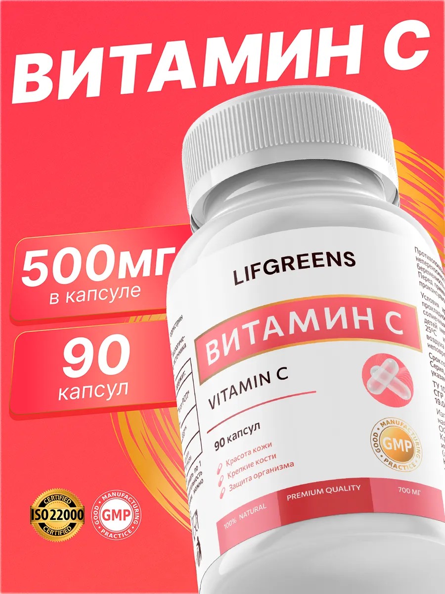 LIFGREENS Витамин С 500 мг для лица и волос 90шт, аскорбиновая кислота
