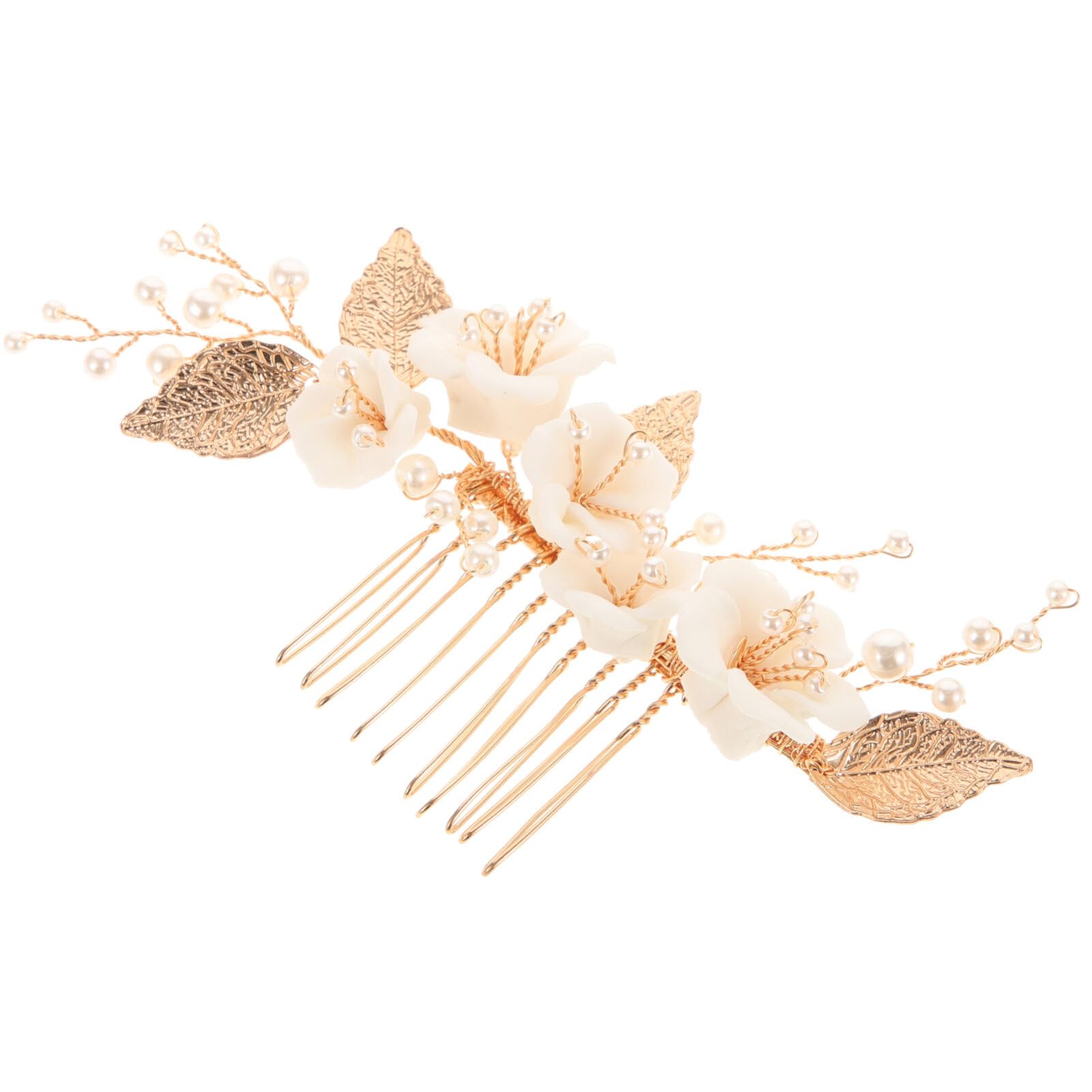 LIFKOME Bride Hairpin Wedding Hair Accessory Simulation Pearl Floral Hair Comb Decor
