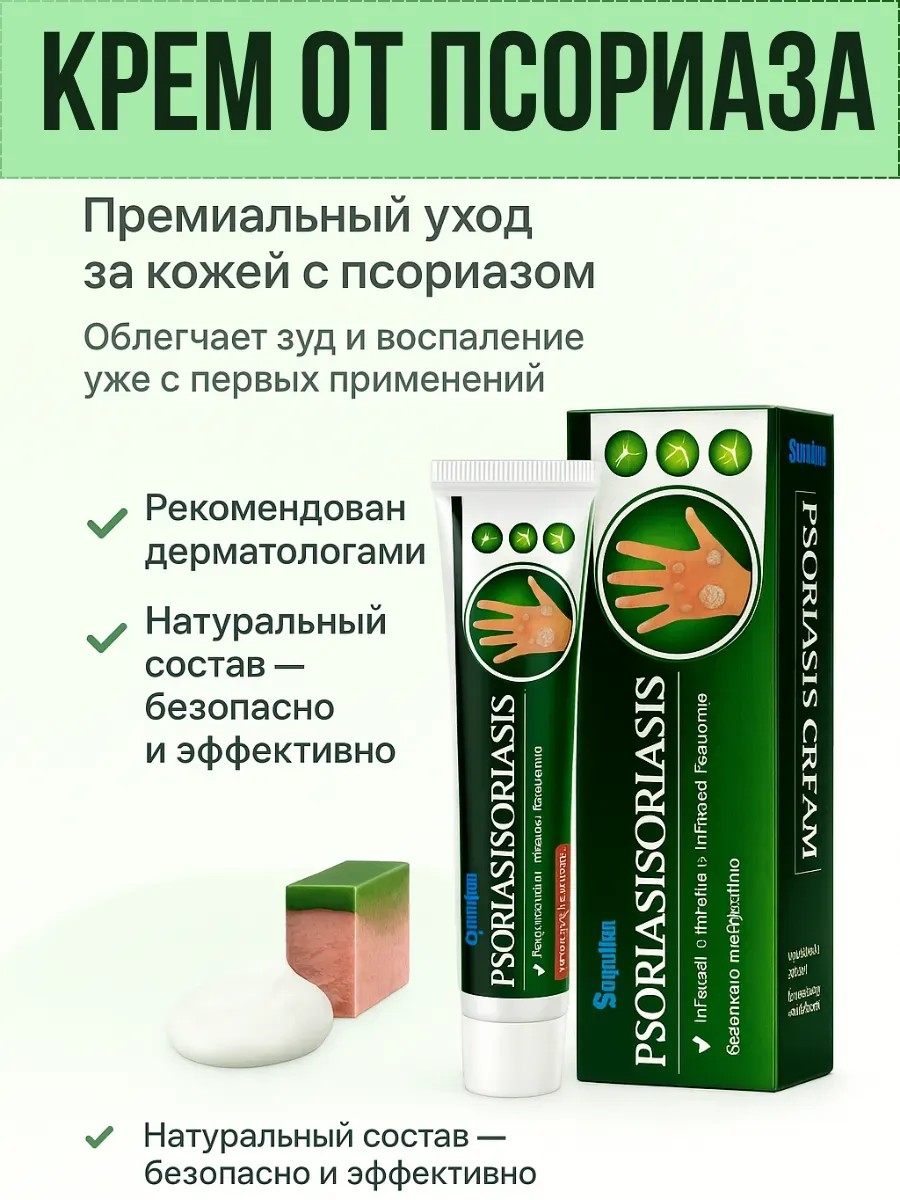 Крем от псориаза — эффективно борется с шелушением, воспалением и зудом, характерными для псориатических бляшек.
