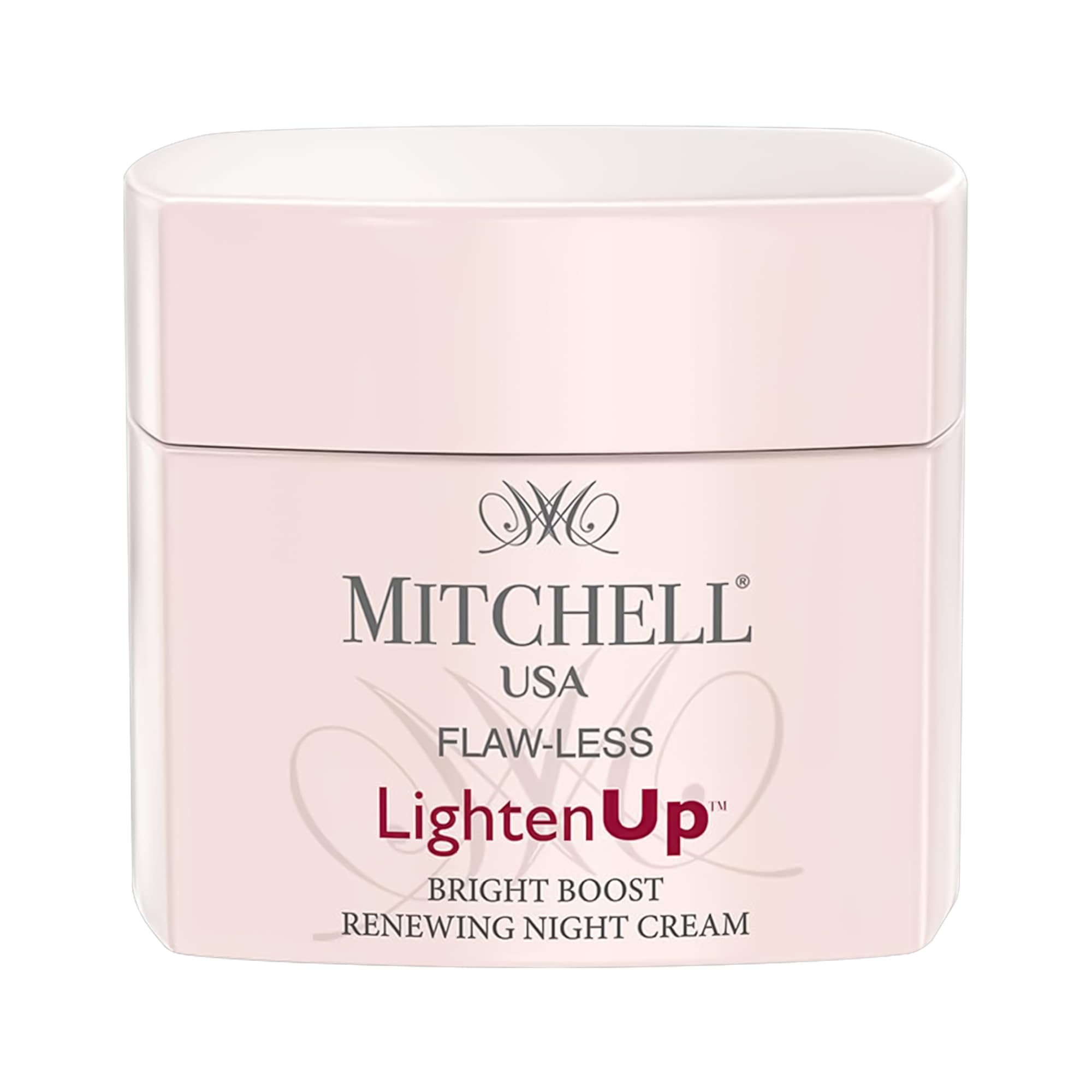 GREAT RESULTS CUSTOMER CARE – Elevate your beauty routine with our premium product and service. Mitchell Brands is a highly customer-focused company, committed to delivering the best experience. If you have any concerns, feel free to contact us. DEEP HYDRATION REJUVENATION - This nourishing night cream works overnight to restore and soothe skin so you can get your beauty sleep and wake up with a dewy, radiant, and restored complexion. Packed with moisture-locking ingredients, it deeply hydrates and replenishes dry, tired skin for a plump, refreshed look by morning, without greess or residue. RESTORES COMPLEXION OVERNIGHT - The overnight facial moisturizer helps improve skin barrier, deeply moisturizes smooths skin texture. This hydrating face cream is suitable for all skin types, delivering intense moisture and nourishment while you sleep. It also helps reduce pore visibility and boosts elasticity, giving you a firmer, more youthful complexion. It restores essential hydration, softens the skin's texture, and prevents overnight moisture loss, leaving your face feeling plump, refreshed, and silky smooth by morning. GENTLE MIDNIGHT MOISTURIZER - Unveil a visibly brighter, smoother, and more radiant complexion with Lighten Up Flaw-Less Bright Boost Renewing Night Cream. Specially designed to work with your skin's overnight repair process, this rich yet lightweight formula delivers intense hydration and targets dullness and uneven tone. Whether your concern is dryness, rough texture, or skin that's lost its luster, this night cream works hard while you rest, so you can wake up looking flawless. ULTRA-HYDRATING FORMULA - Formulated with Imperial Peony, known for its brightening and soothing properties, this night cream enhances radiance and delivers a healthy, even-toned glow. The lightweight, non-greasy anti-aging face cream melts into skin, infusing it with antioxidants for healthy, glowing skin. This nourishing night cream supports your skin's natural overnight renewal cycle to boost brightness and reduce dullness while you sleep.