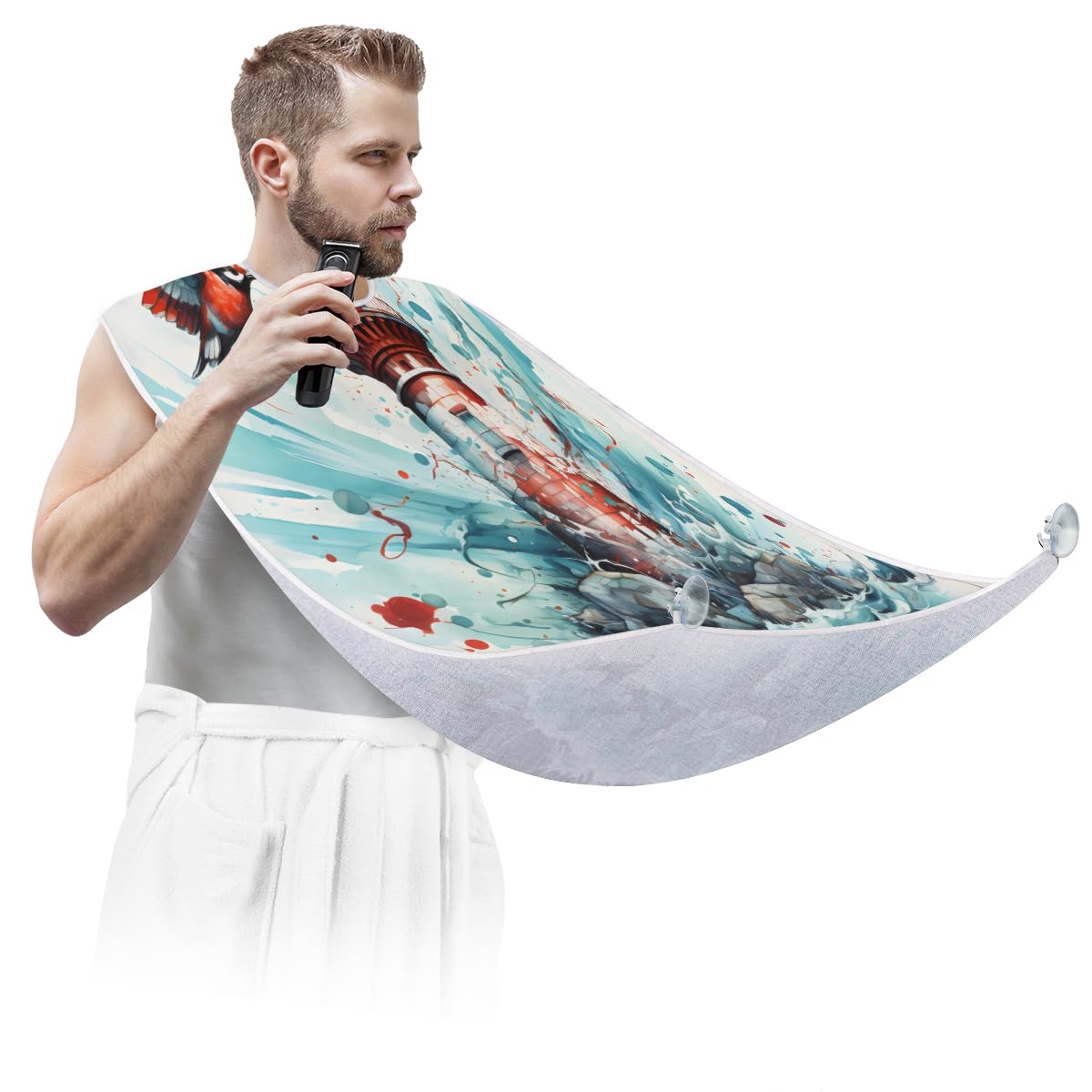 Lighthouse Landscape Beard Bib Apron Beard Hair Catcher for Men Shaving Fathers Day Anniversary Christmas Gifts for Dad Husband Beard Bib with 2 Suction Cups