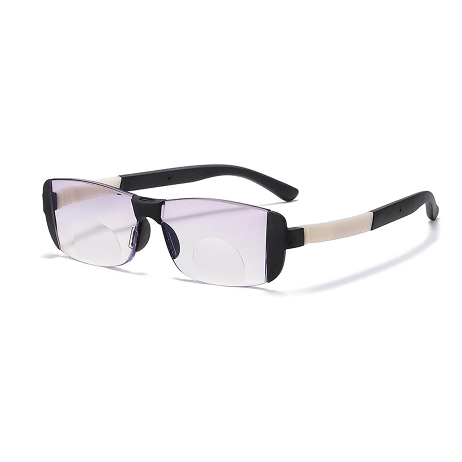 Fashion frameless reading glasses are made of TR90 material, which is light, comfortable, flexible and not easy to be damaged. Not only do they provide the wearer with a wider field of view, but they also present an elegant and stylish appearance.Color: black, purple, blueApplicable people: men, womenUsage: office, reading, home, travel, shoppingpacking list1x reading glasses1x glasses case1x cleaning Instructions for use: Please use a glasses cleaning instead of a handkerchief or your hands to clean your glasses to extend the life of your glasses.Notice:When you are not using your glasses, please put them in the glasses case to avoid unnecessary scratches on the lenses, which will affect your use.?Transparent lens The lens is clear, hard, and scratch-resistant, with true color reproduction, no distortion of vision, clear vision, UV400 protection, and not easy to be damaged and scratched. Anti-blue light glasses can effectively block blue light radiation emitted by electronic devices such as computers, smartphones, and televisions, thereby eliminating eye fatigue and headaches and protecting vision. Glasses power: 1.0x (45-49 years old), 1.5x (50-54 years old), 2.0x (55-59 years old), 2.5x (60-64 years old), 3.0x (65-69 years old) , 3.5x (70-74 years old). You can choose according to your needs. Frameless reading glasses are made of TR90 material, which is very strong, flexible and lightweight. They flex under pressure and fit comfortably to the contours of your face. These glasses are extremely comfortable to wear. Bifocal reading glasses, there is no obvious dividing line between the focal points of progressive lenses. No need to take off your glasses. Move your eyes from top to bottom to see different visual areas near and far.