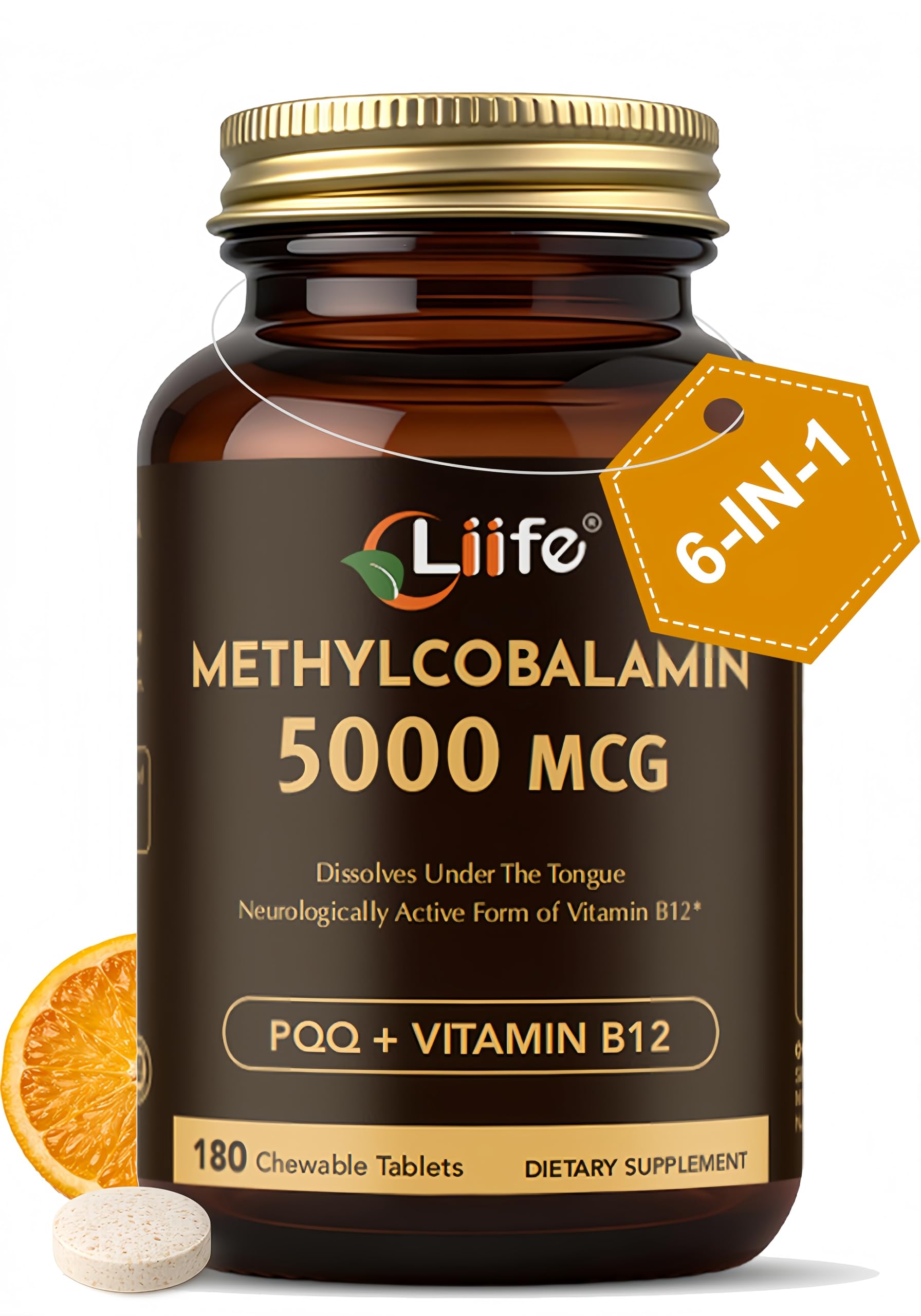 LIIFE Vitamin B12(Active Methylcobalamin) 5000 mcg | 6-in-1 Formula | Energy Support | Brain & Nervous System Health | 180 Chewable Tablets | Gluten Free