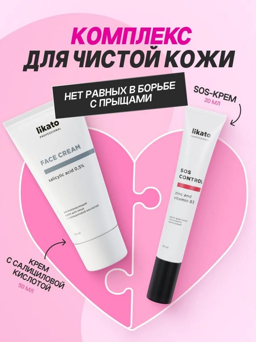 | Комплектация | Регенерирующий крем для лица с салициловой кислотой, 50 мл - 1шт; Крем для лица точечного нанесения SOS CONTROL, 20 мл - 1 шт |