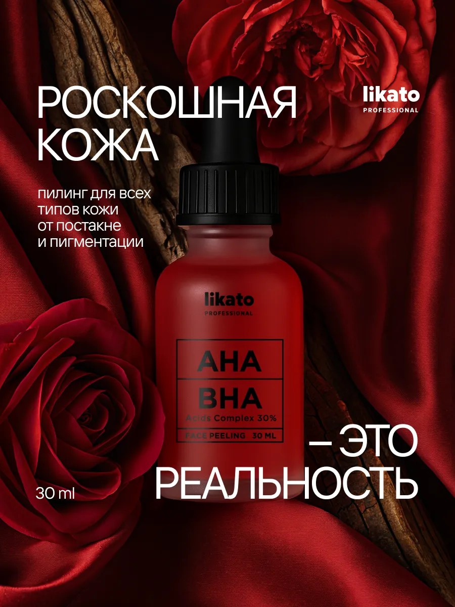 Чистая кожа без несовершенств и жирного блеска? Легко! Всё это тебе обеспечит пилинг для лица от чёрных точек likato. Пилинг для лица профессиональный содержит идеально подобранную концентрацию aha- и bha-кислот, которые комплексно действуют на кожу, идеально подходят для сужения пор, устраняют тусклость кожи. Средство от прыщей поможет избавиться от чёрных точек в области носа, подбородка и других частей лица, а также от угрей, от акне и постакне. Благодаря уникальной формуле, пилинг для лица профессиональный обеспечивает эффективное очищение лица и при этом совершенно безопасен для кожи лица, дарит нежный уход за лицом. Кровавый пилинг помогает против чёрных точек, против постакне, убирает пигментные пятна и воспаления. Смесь кислот, в которую входят салициловая кислота для лица, молочная кислота и гликолевая кислота, обеспечивает очищение, вытягивая загрязнения из пор, эффективно действуя против прыщей, сводя к минимуму появление воспалений, закупоренных пор и закрытых комедонов, идеально подходит для жирной кожи лица. Кислотный пилинг удаляет омертвевшие клетки кожи и придаёт лицу сияющий ровный тон. Профессиональная косметика для лица — залог твоей красоты и уверенности! Средство от чёрных точек и от прыщей на лице также подходит для всех типов кожи, включая чувствительную.