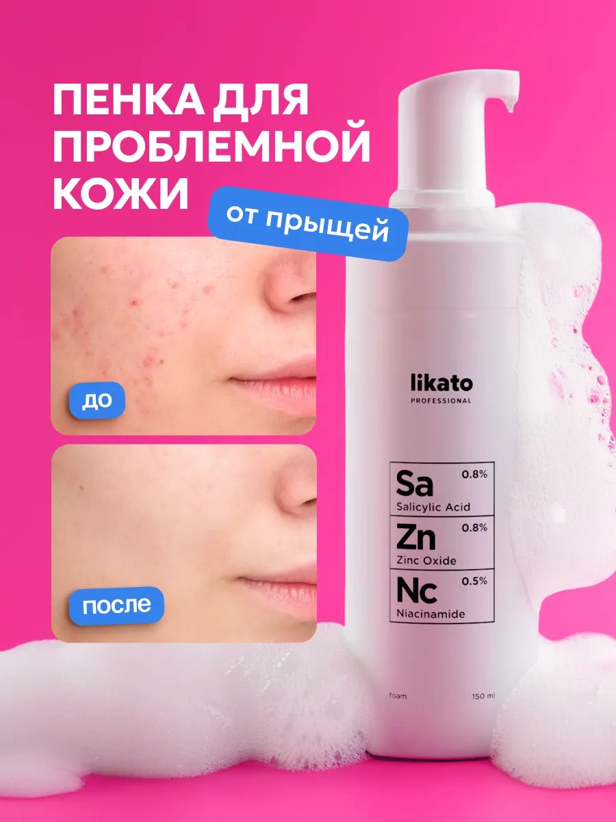 Пенка для умывания лица likato professional с ниацинамидом, салициловой кислотой и цинком обеспечивает глубокое очищение кожи взрослых и подростков. С помощью средства для умывания от прыщей можно смыть макияж и остатки кожного жира. Умывалка для лица от прыщей нормализует работу сальных желёз, сужает расширенные поры и устраняет несовершенства.