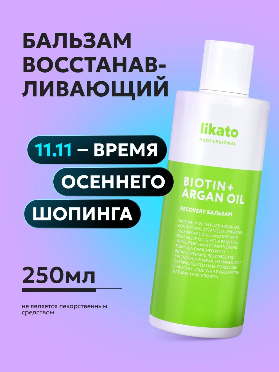 Бальзам Likato Professional Recovery для поврежденных волос против ломкости. Масла, используемые в продукте, проникают вглубь волоса, в следствие чего бальзам ополаскиватель оказывает интенсивное питание. Волосы получают защиту от дальнейшего разрушения и от секущихся кончиков, убирает пушистость. Кондиционер для волос обеспечивает профессиональный уход. Маска бальзам дает отличный эффект восстановления, глубокое питание. Биотин уплотняет и выравнивает структуру волос. Аргановое масло восстанавливает структуру волоса, восполняя потери защитного слоя. Масло авокадо оказывает увлажняющее и разглаживающее действие, придавая шелковистость. Кокосовое масло для укрепления оказывает питательное действие, уплотняя волос. Подходит для тонких поврежденных, пористых и пушистых волос. Профессиональная уходовая косметика для волос поможет сохранить крепкие и здоровые волосы на долгие годы. Красивая женская прическа из гладких, как шелк волос - это то, что подарит наш бальзам.